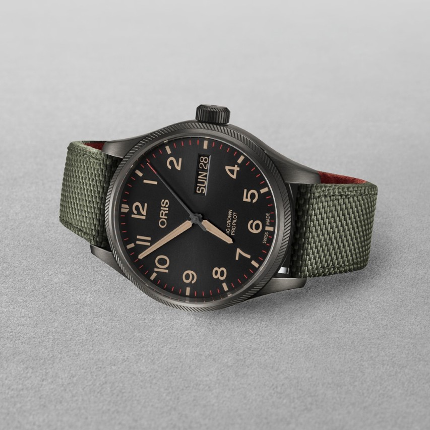 จุดเด่นที่ชอบสำหรับนาฬิกาเรือนนี้ ตรงที่การเลือกสีสรรต่างๆที่หน้าปัด และสายผ้าถัก ดูเป็นนาฬิกาแนว military ได้อย่างลงตัวกับตัวเรือน PVD สีเทาดำ รวมถึงความสะดวกในการใช้งานจาก Folding buckle