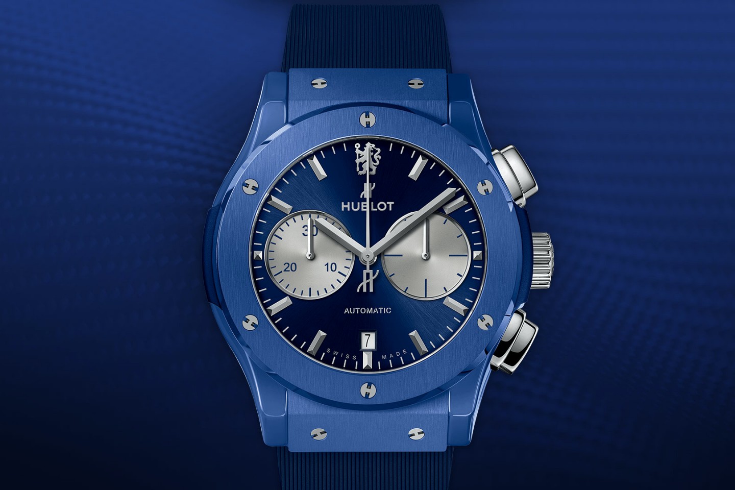 ในฐานะ Official Timekeeper ของทีมเชลซี Hublot แบรนด์นาฬิกาหรูของสวิส เปิดตัวนาฬิการุ่นพิเศษสำหรับทีมเชลซีโดยเฉพาะ ด้วยการนำนาฬิการุ่น Classic Fusion Chronograph มาใส่รายละเอียดความเป็นเชลซีลงไป เริ่มจากตัวเรือนไทเทเนียม+เซรามิกสีน้ำเงินขัดแต่งแบบ polished สลับ satin ขนาด 45 มิลลิเมตร หนา 13.05 มิลลิเมตร หน้าปัดสีน้ำเงิน sun-ray และหน้าปัดย่อยจับเวลา 2 วง สีเงิน sun-ray เข็มและมาร์กเกอร์สีเงินเงางาม หน้าต่างวันที่ตรงตำแหน่ง 6 นาฬิกา โดดเด่นด้วยโลโก้รูปสิงโตสีเงินที่เป็นสัญลักษณ์ของทีมเชลซีตรงตำแหน่ง 12 นาฬิกา