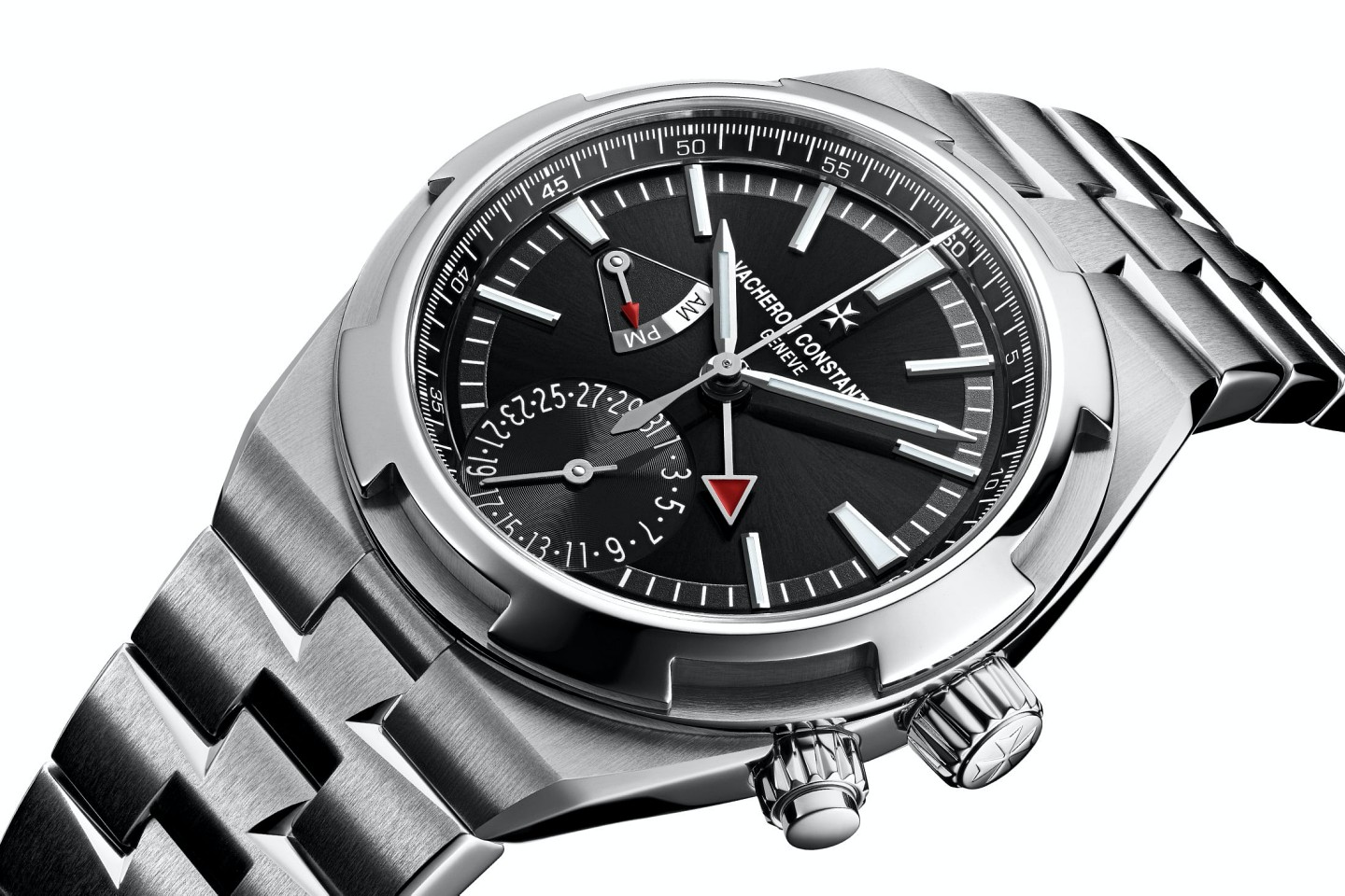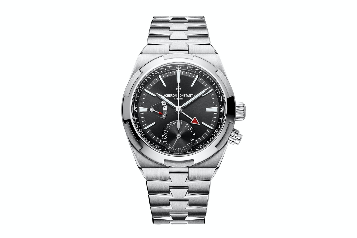 Vacheron Constantin เปิดตัว ‘Oversea Dual Time’ ครั้งแรกในปี 2017 โดยมาพร้อมหน้าปัดสีน้ำเงินและสีเงิน จนมาถึงปีนี้ VC มีการอัพเดทรุ่นนี้ด้วยการเปิดตัวนาฬิกาหน้าปัดสีดำแบบ sun-ray ใช้สีแดงแต้มที่ปลายเข็ม hometime และเข็มบอกกลางวันกลางคืน (AM-PM) โดยมี sub-dial แสดงวันที่แบบเข็มที่มีการขัดแต่งเหมือนร่องแผ่นเสียง ชุดเข็มทั้งหมดและมาร์กเกอร์ใช้วัสดุทองคำขาว 18 กะรัต