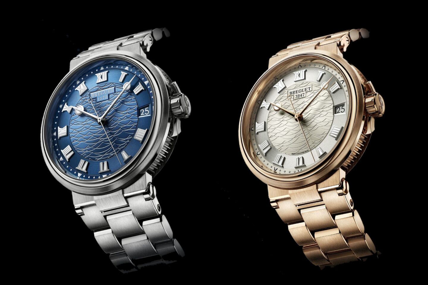 ปี 2020 Breguet เปิดตัวนาฬิการุ่นใหม่ในคอลเลคชั่น Marine โดยทุกรุ่นใช้หน้าปัดทองคำแกะสลักเป็นลวดลายรูปคลื่นในทะเล พร้อมสลักหมายเลขประจำเรือนและเคลือบสีน้ำเงินหรือสีเงิน ใช้เข็มทรง Breguet และหลักชั่วโมงตัวเลขโรมันที่มีการเคลือบสารเรืองแสง Super Luminova ตามแบบฉบับนาฬิกาสปอร์ต