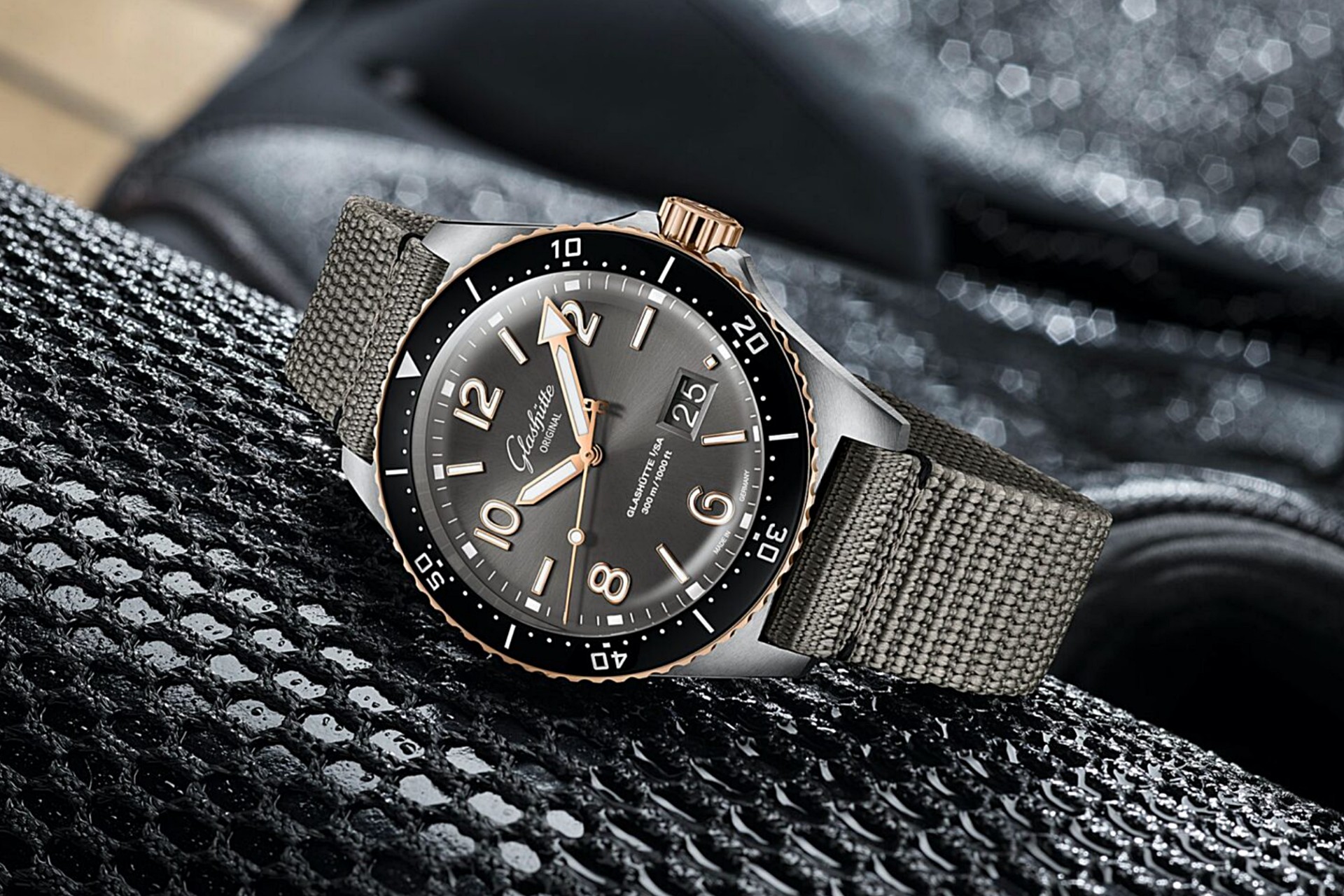 Glashütte Original เปิดตัว SeaQ Panorama Date คอลเลคชั่นนาฬิกาดำน้ำยุคใหม่ในปี 2019 โดยได้แรงบันดาลใจการออกแบบจากนาฬิกาดำน้ำ ‘Spezimatic’ Type RO TS 200 จากปี 1969 ใช้หลักชั่วโมงแบบขีดสลับกับตัวเลขอารบิกพร้อมปลายเข็มนาทีแบบหัวลูกศรเคลือบสารเรืองแสง มาผสมผสานกับวันที่แบบ Big Date ที่เป็นเหมือนเอกลักษณ์ของแบรนด์ลงไปบนหน้าปัดและตัวเรือน Stainless Steel ที่ผ่านการขัดแต่งได้อย่างประณีตตามแบบฉบับของช่างฝีมือเยอรมัน