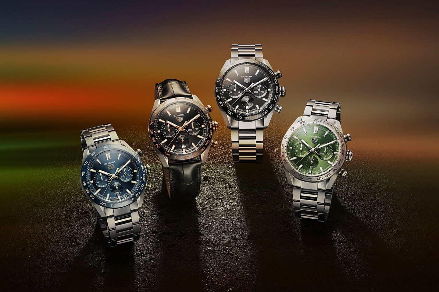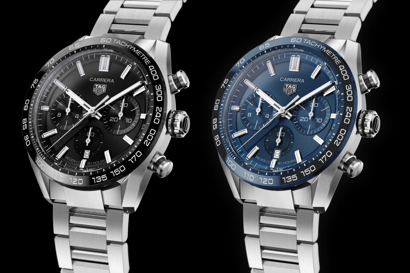 ในส่วนของคอลเลคชั่น Carrera Automatic Chronograph ในยุคปัจจุบัน มีการเผยโฉมรุ่นใหม่ล่าสุด ด้วยตัวเรือน Stainless Steel ขัดเงาสลับด้าน ขนาด 44 มิลลิเมตร หนา 15.27 มิลลิเมตร ตัวเรือนทรงกลมพร้อมขาบิดที่ยกมาจากรุ่นดั้งเดิม ขอบ Bezel ขัดด้านสลัก Tachymeter Scale ในรุ่นหน้าปัดสีเขียว และขอบ Bezel วัสดุ Ceramic สลัก Tachymeter Scale สีขาวในรุ่นหน้าปัดสีดำและน้ำเงิน เม็ดมะยมและปุ่มกดจับเวลาเคลือบสีดำสลับเพิ่มความสปอร์ต