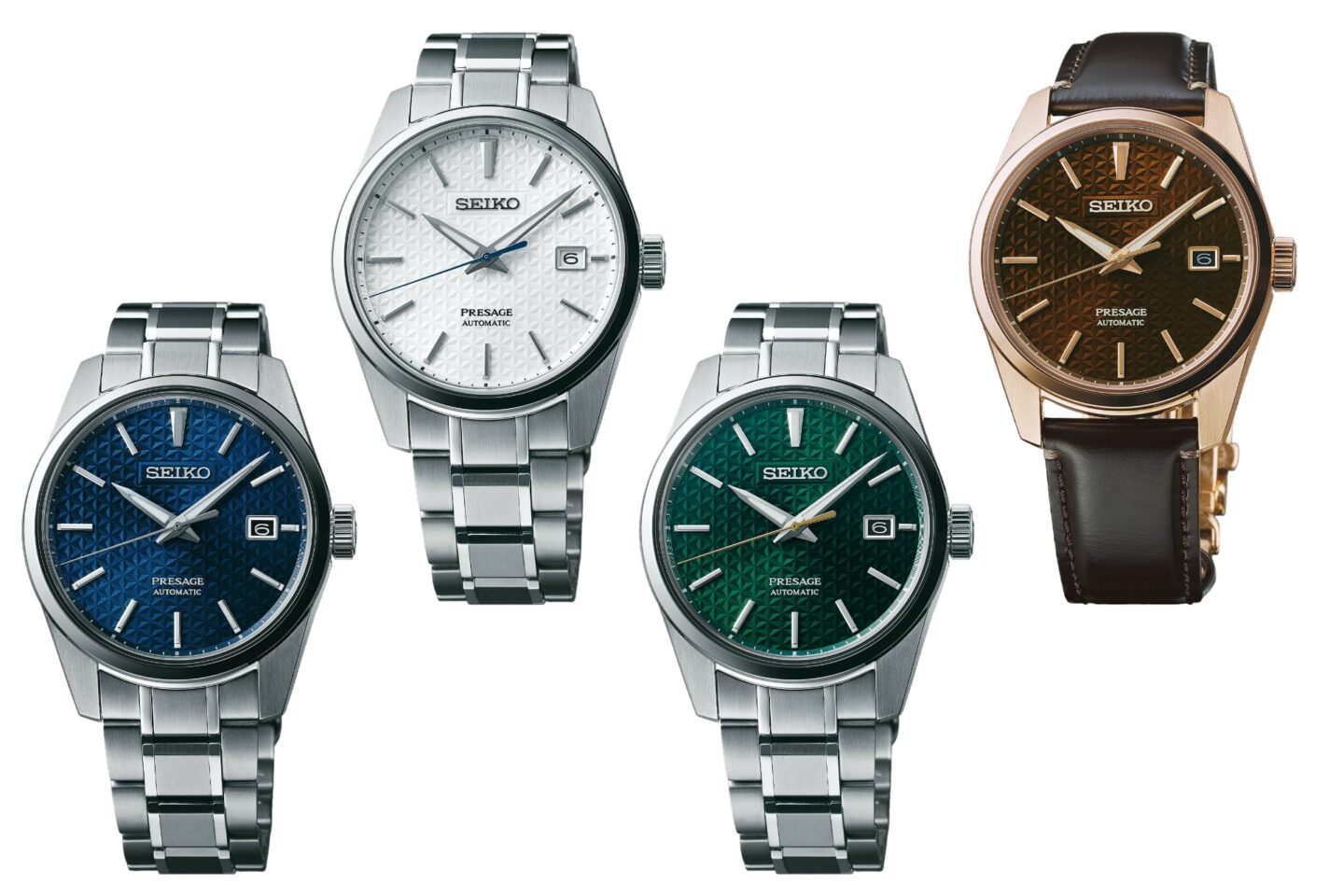 และจุดเด่นที่ขาดไม่ได้สำหรับคอลเลกชั่น Presage นั่นคือ ลวดลายบนหน้าปัดที่ได้แรงบันดาลใจจากใบป่าน “Asanoha” ที่สื่อความหมายถึงการเจริญเติบโตและแข็งแรง รวมทั้งสีของหน้าปัดที่ได้แรงบันดาลใจมาจากธรรมชาติในญี่ปุ่น ได้แก่ Aitetsu Blue, Tokiwa Green, Shironeri white และ Susutake brown ที่มาพร้อมกับตัวเรือน Stainless Steel เคลือบสี Rose Gold ที่มาพร้อมกับสายหนังวัวสีน้ำตาล โดยบอกเวลาแบบ 3 เข็ม เคลือบสารเรืองแสง Lumibrite พร้อมหน้าต่างวันที่ตรงตำแหน่ง 3 นาฬิกา