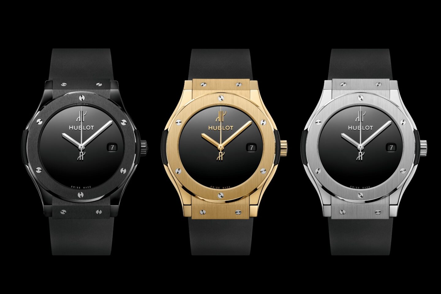 สำหรับนาฬิการุ่นพิเศษที่ทาง Hublot ฉลองครบรอบ 40 ปี ในปีนี้ เปิดตัวมาพร้อมกัน 3 รุ่น ด้วยวัสดุตัวเรือน 3 แบบ ได้แก่ Yellow Gold 18K, Titanium และ Black Ceramic ขนาด 45 มิลลิเมตร กันน้ำลึก 100 เมตร หน้าปัดสีดำเคลือบแลคเกอร์เงางามแบบไร้หลักชั่วโมงเหมือนรุ่นดั้งเดิม มีการใส่โลโก้แบรนด์ที่ตำแหน่ง 12 นาฬิกา และที่ปลายเข็มวินาที มีหน้าต่างวันที่ตรงตำแหน่ง 3 นาฬิกา
