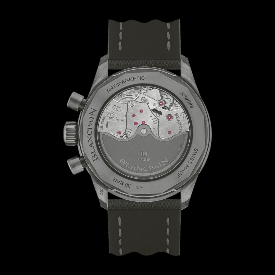 ฝาหลังขันเกลียวแบบโปร่งใส โชว์การทำงานของกลไก Automatic Flyback Chronograph Cal.F385 ความถี่ 36,000 ครั้ง/ชั่วโมง สำรองพลังงาน 50 ชั่วโมง ที่สามารถป้องกันสนามแม่เหล็กด้วย Silicon Balance Spring และด้วยความถี่สูงถึง 5Hz จึงทำให้สามารถจับเวลาได้ละเอียด 1/10 วินาที พร้อมทั้งระบบ Flyback ที่สามารถกด Restart จับเวลาแบบต่อเนื่องโดยไม่ต้องกด Stop และ Reset โดยควบคุมกลไกจับเวลาด้วยชุดเฟือง Column Wheel และระบบ Vertical Clutch