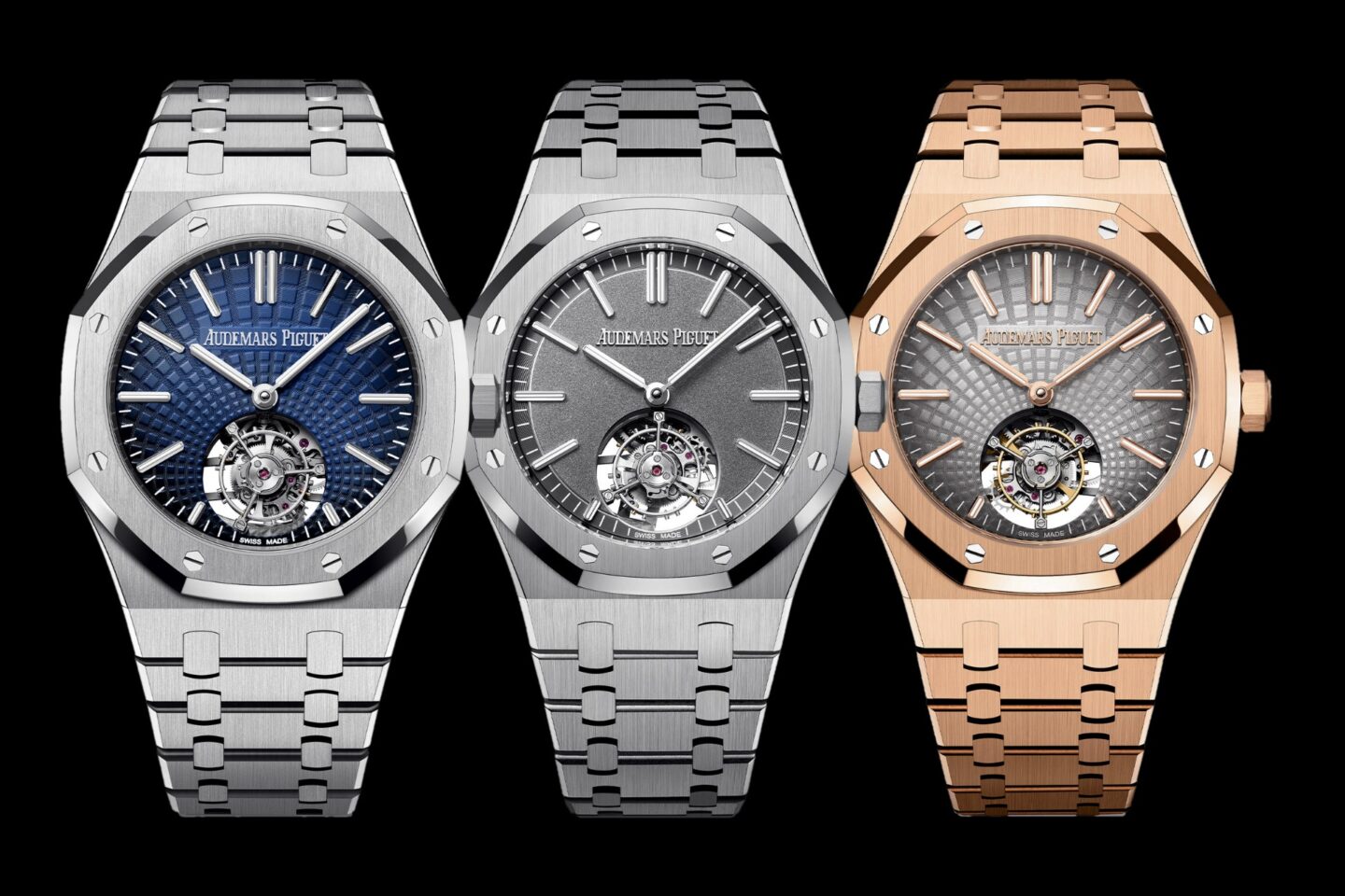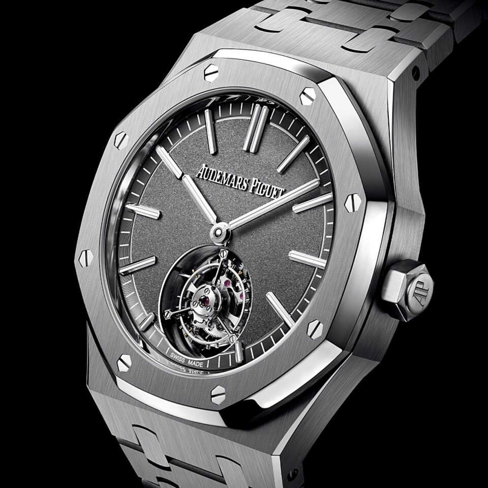 ฟังก์ชั่น Tourbillon ถูกนำมาใส่ลงในคอลเลกชั่น Royal Oak ครั้งแรกในปี 1997 เพื่อฉลองครบรอบ 25 ปี ซึ่งรุ่นปัจจุบันมีการอัพเดทอีกครั้ง ด้วยการใส่กลไก Flying Tourbillon ที่มีความหรูหราและสวยงามมากขึ้น รวมทั้งมีการใช้ลวดลายหน้าปัดแบบใหม่อย่าง ‘Evolutive Tapisserie’ ที่เหมือนเป็นการประยุกต์ลวดลายสุดคลาสสิกจากปี 1972 ให้ดูร่วมสมัยมากขึ้นในรุ่น Steel และ Pink gold หรือลวดลาย ‘Sandblasted’ สำหรับผู้ที่ชอบความแตกต่าง