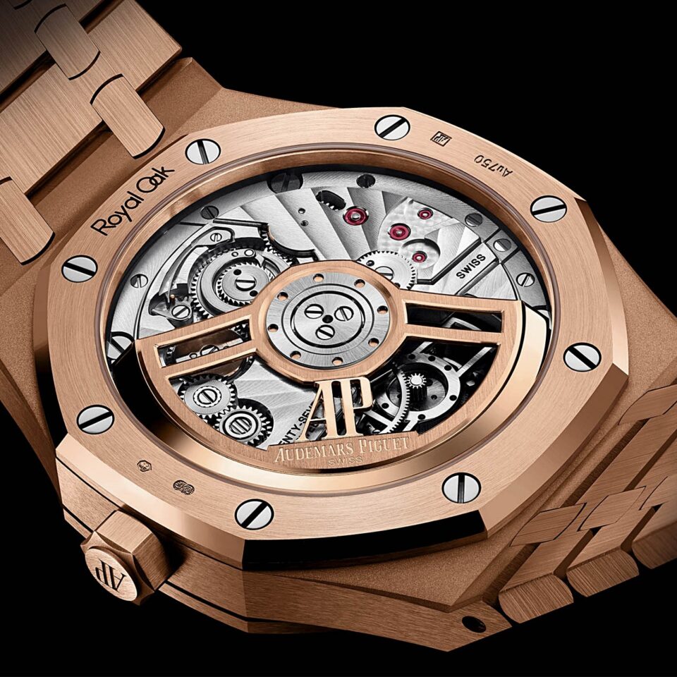 Audemars Piguet ใส่ฟังก์ชั่น Tourbillon กลไกที่มีความซับซ้อนสูงมากในระดับ Grand Complication ลงในคอลเลกชั่น Royal Oak นาฬิกาสปอร์ตสุดคลาสสิก ที่เปิดตัวครั้งแรกในปี 1972 และกลายเป็นจุดเริ่มต้นของนาฬิกา ‘Sport Luxury’ ที่มีรูปลักษณ์โดดเด่นเป็นตำนานมาตั้งแต่อดีตจนถึงปัจจุบัน ในตัวเรือนขนาด 41 มิลลิเมตร หนา 10.4 มิลลิเมตร ที่ผ่านการขัดแต่งลวดลาย Brushed อันเป็นเอกลักษณ์ทั้งตัวเรือนและสายแบบ Integrated โดยมาพร้อมวัสดุตัวเรือนและสาย 3 ชนิดให้เลือก ได้แก่ Stainless Steel, Titanium และ Pink Gold