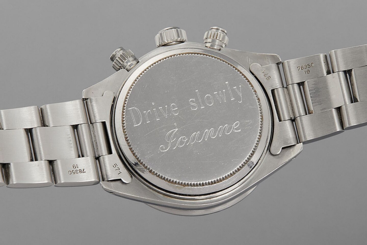 นาฬิาเรือนนี้ Joanne Woodward ภรรยาของ Paul Newman ซื้อให้กับเขาในปี 1983 โดยมีการสลักข้อความ “Drive Slowly Joanne” ที่ฝาหลัง ซึ่งเป็นนาฬิกาเรือนที่ Newman สวมใส่ยาวนานที่สุด และเขาได้มอบนาฬิกาเรือนนี้ให้เป็นของขวัญแก่ Clea Newman Soderlund ลูกสาวของเขา ก่อนที่ Newman จะจากโลกนี้ไปในปี 2008