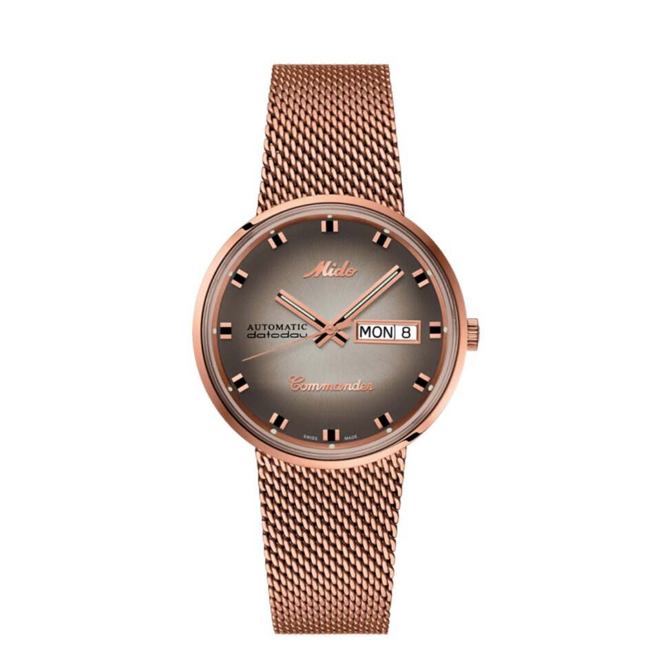 ช่วงเวลาพิเศษส่งท้ายปีนี้ Mido เติมความพิเศษให้นาฬิการุ่น Commander Shade โดยดีไซน์ออกมาในสี Rose Gold เป็นครั้งแรก หลังจากที่ก่อนหน้านี้ใช้คู่สีดำและเงินมาตลอด ตัวหน้าปัดเป็นสีเงินที่ช่วยขับให้เข็มนาฬิกาสี Rose Gold ดูโดดเด่นขึ้นมา เช่นเดียวกับขอบหน้าปัดที่เป็นวงกลมสี Rose Gold สองวงขนานกันไป ช่วยเพิ่มมิติให้นาฬิกาเรียบหรูเรือนนี้ดูไม่จำเจ และไม่เพียงความสวยงามเท่านั้นที่ทำให้ Commander Shade เหมาะแก่การเป็นของขวัญในเทศกาลแห่งความสุขนี้ แต่การใช้งานก็ยังสมบูรณ์แบบด้วยตัวสายสี Rose Gold ที่แม้จะเป็นโลหะ แต่ Mido เนรมิตให้สัมผัสของเส้นโลหะที่สานกันอย่างประณีตนี้ นุ่มนวลอยู่บนข้อมือราวกับซาติน เป็นความหรูหราที่ใส่สบาย สมกับที่ Commander เป็นนาฬิการะดับตำนานที่ไม่เคยตกยุค