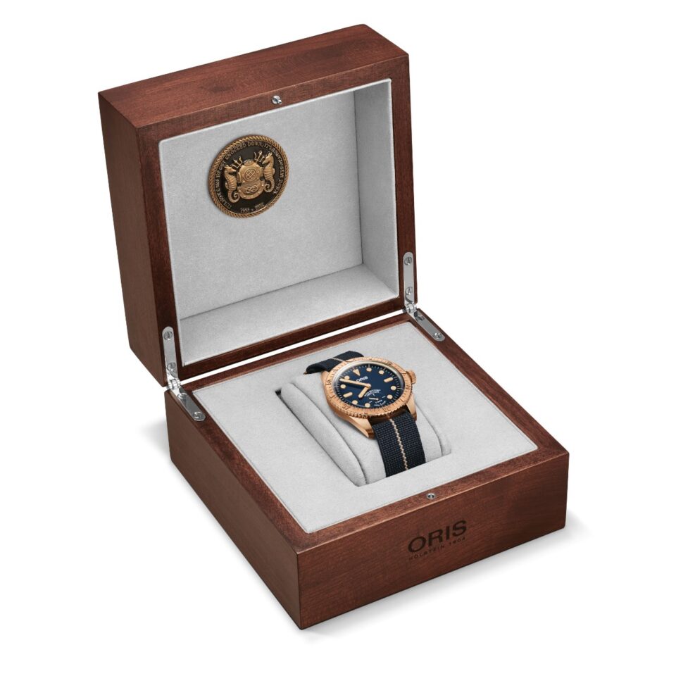 สำหรับนาฬิการุ่นพิเศษเรือนนี้ มีตัวเรือนที่ผลิตจากโลหะ Bronze ขนาด 40 มิลลิเมตร ขอบ Bezel รวมทั้ง Diving Scale Insert และเม็ดมะยมล้วนผลิตจากโลหะ Bronze หน้าปัดสีน้ำเงิน Navy ตัดกับชุดเข็มและหลักชั่วโมงสี Bronze ที่เคลือบด้วยสารเรืองแสง Super Luminova สีเบจ มีหน้าปัดย่อยสำหรับเข็มวินาทีตรงตำแหน่ง 6 นาฬิกา พร้อมระบุคุณสมบัติการกันน้ำลึก 100 เมตร และสำรองพลังงาน 5 วัน จากกลไก In-House รุ่นใหม่ และใช้กระจกหน้าปัด Sapphire แบบนูน