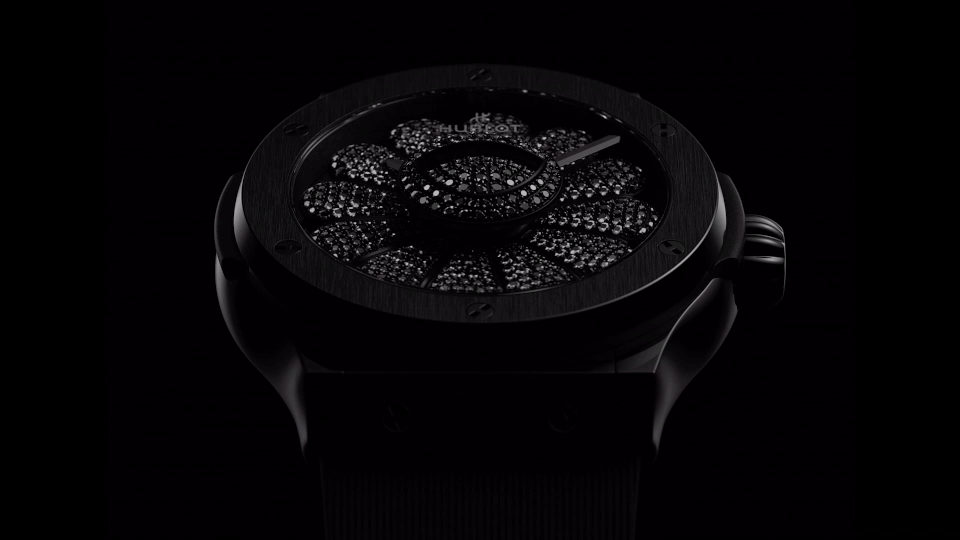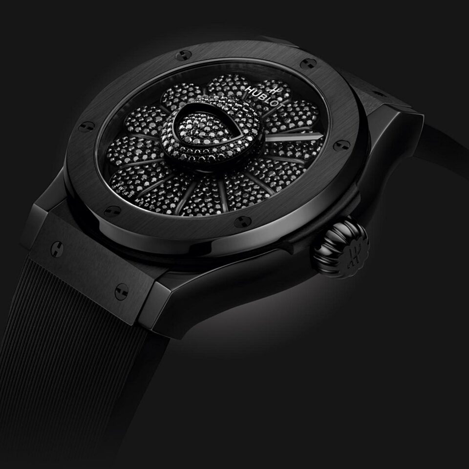 Takachi Murakami เคยร่วมงานกับแบรนด์สินค้าระดับโลกมาแล้วมากมายอย่าง Louis Vuitton, Supreme ซึ่งมักจะใช้สีสันสดใสตามแนวถนัดของเขาเป็นหลัก แต่นาฬิกาเรือนนี้ทาง Hublot ใส่ ‘Smiling Flower’ โทนสีดำล้วนลงไปบนหน้าปัด ซึ่งเป็นการผสมผสานตัวตนของแบรนด์นาฬิกาและศิลปินได้อย่างแตกต่างและลงตัวที่สุด