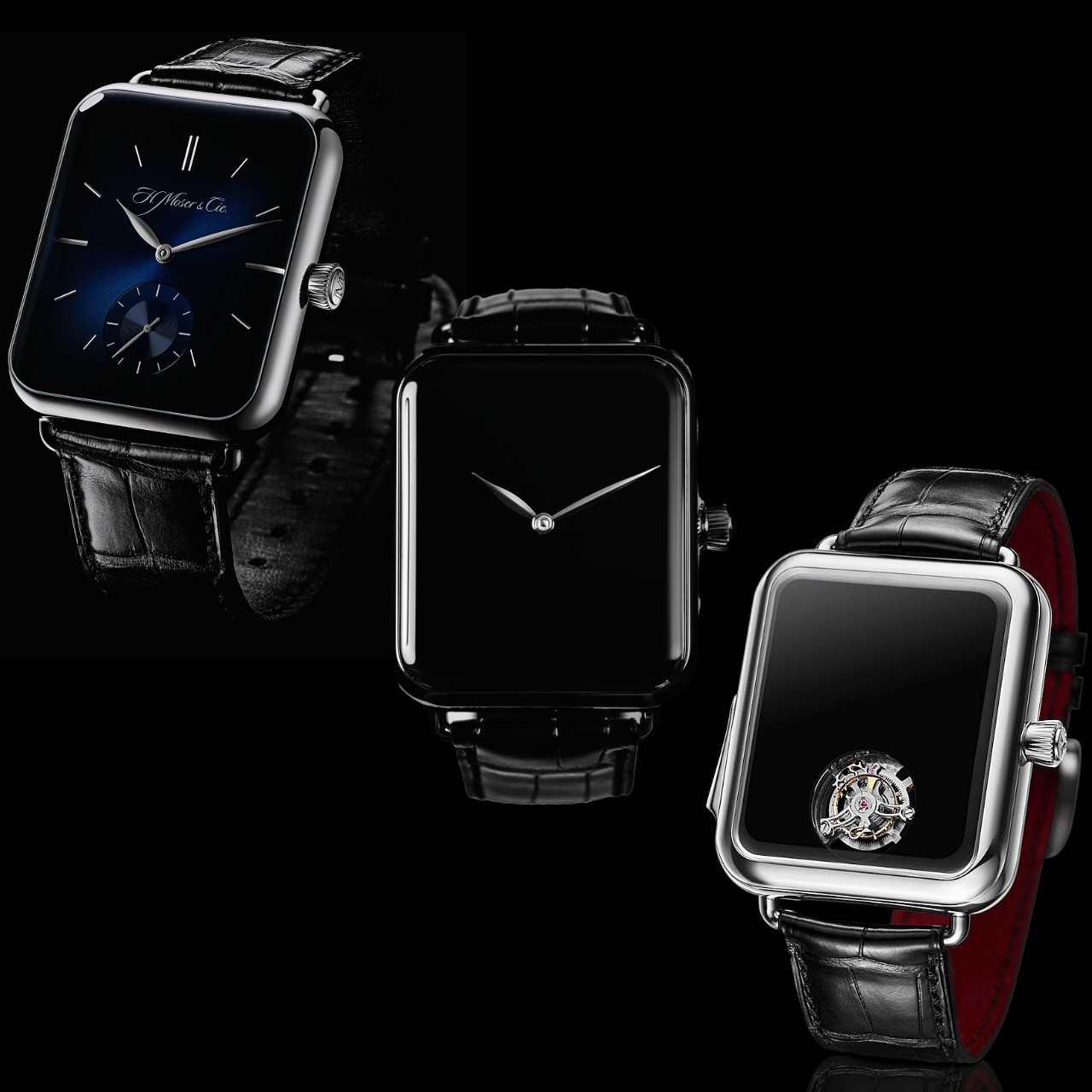 H.Moser & Cie. แบรนด์นาฬิกาอิสระที่มีแนวคิดนอกกรอบในการออกแบบนาฬิกามาตลอด เปิดตัว คอลเลกชั่น ‘Swiss Alp Watch’ ครั้งแรกในปี 2016 ด้วยตัวเรือนทรงสี่เหลี่ยมผืนผ้า ที่มีการขัดแต่งเหลี่ยมมุมให้โค้งมน ภายในขับเคลื่อนด้วยกลไกจักรกล 100% โดยได้แรงบันดาลใจจากความต้องการหยิกแกมหยอก SmartWatch นาฬิกาอัจฉริยะแห่งยุคดิจิตอลเรือนสี่เหลี่ยมที่ฮิตกันทั่วบ้านทั่วเมืองในเวลานั้น