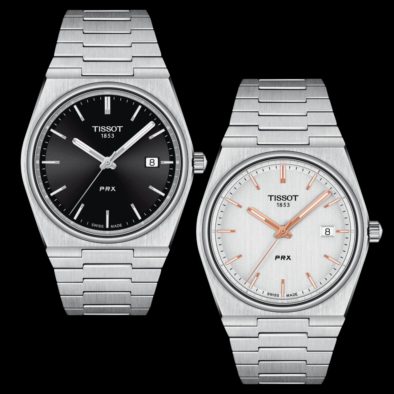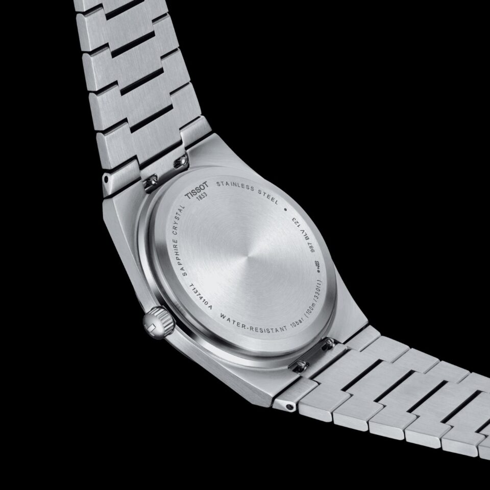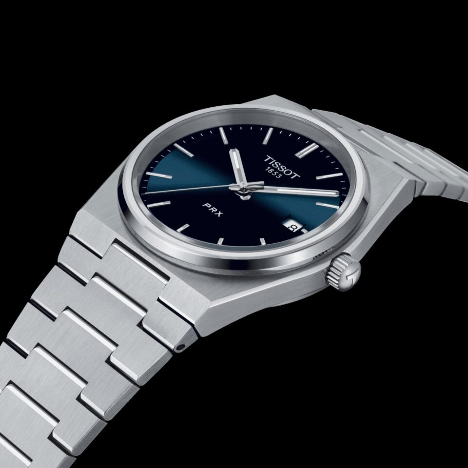 Tissot คือหนึ่งในแบรนด์สวิสที่มีการปรับตัวเพื่อความอยู่รอด โดยผลิตนาฬิกากลไก Quartz ออกมาวางจำหน่ายในปี 1978 ในชื่อ ‘PRX’ ที่มีความหมายจากคำว่า “Precise and Robust” (เที่ยงตรงและแข็งแกร่ง) ส่วนตัว X คือเลข 10 ในภาษาโรมัน ซึ่งหมายถึงนาฬิกาสามารถกันน้ำได้ลึก 10 ATM หรือ 100 เมตร โดยผลิตขึ้นจากตัวเรือน Stainless Steel ทรง Tonneau หน้าปัดทรงกลม ที่มาพร้อมกับสายโลหะแบบ Integrate ตามกระแสแฟชั่นนาฬิกาในยุค 1970s ที่เริ่มกลับมาเป็นที่นิยมอีกในปัจจุบัน