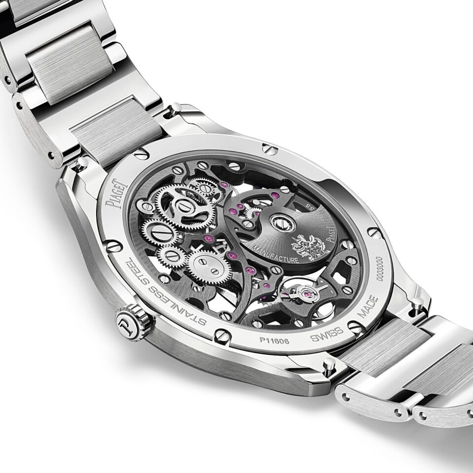 จนมาถึงปี 2021 Piaget รังสรรค์นาฬิกา Skeleton ขึ้นเพื่อเฉลิมฉลองให้กับ Piaget Polo นาฬิกาลุคสปอร์ตสุดหรูที่เปิดตัวครั้งแรกในปี 1979 ซึ่งในการพัฒนาครั้งนี้ ทีมดีไซเนอร์และวิศวกรการออกแบบได้หยิบคาแรคเตอร์เด่นของ Piaget Polo อย่าง ตัวเรือนโค้งมนที่ถูกครอบไว้ด้วยดีไซน์ขอบตัวเรือน Stainless Steel ทรงกลม หน้าปัดทรง Cushion ขนาด 42 มิลลิเมตร และหนาเพียง 6.5 มิลลิเมตร เท่านั้น