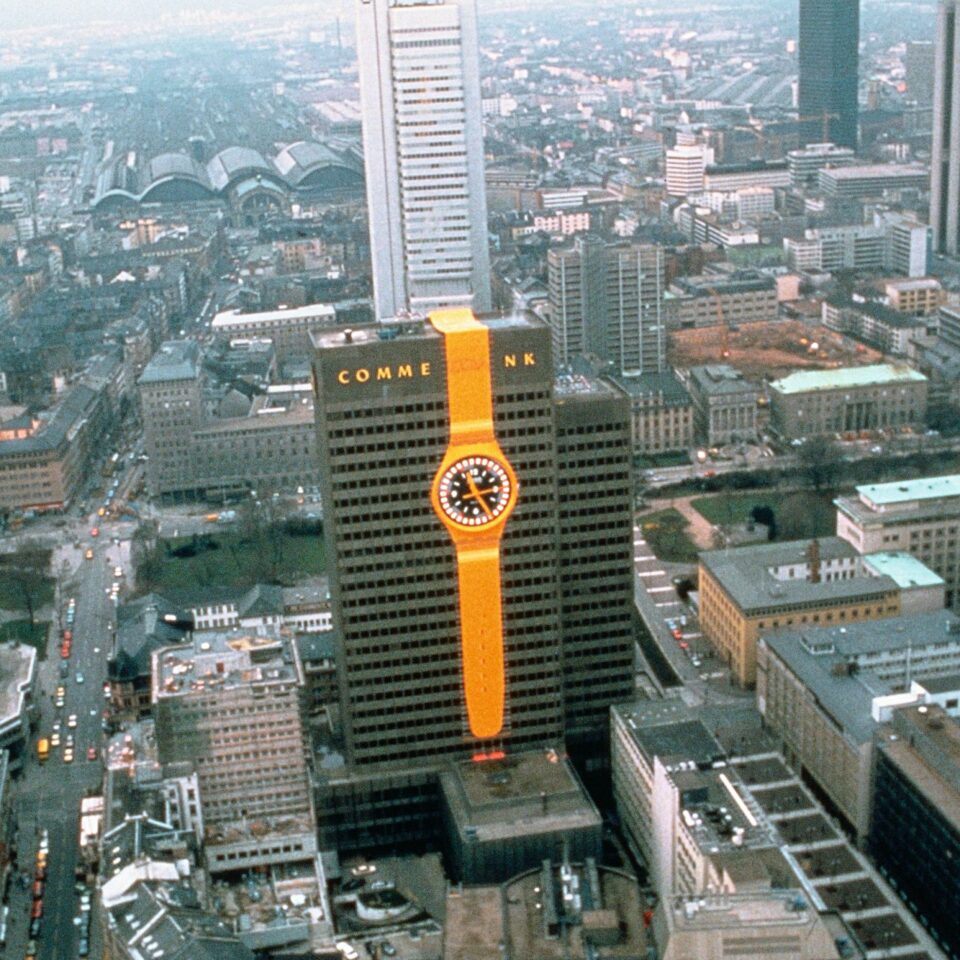 และที่สำคัญ ปี 1984 ยังเป็นปีที่ Swatch ได้จัดแสดงนาฬิกาขนาดมหึมา ที่มีน้ำหนักถึง 13 ตัน และสูง 162 เมตร ที่บริเวณอาคาร Commerzbank สำนักงานใหญ่ของ Swatch ณ เมือง Frankfurt และได้รับการบันทึกลงใน Guinness Book รวมถึงยังเป็นปีที่ Swatch ได้ริเริ่มพัฒนานาฬิกาให้เป็นรูปแบบใหม่ๆ ด้วยเทคนิคและดีไซน์แบบ Technicolor อีกด้วย