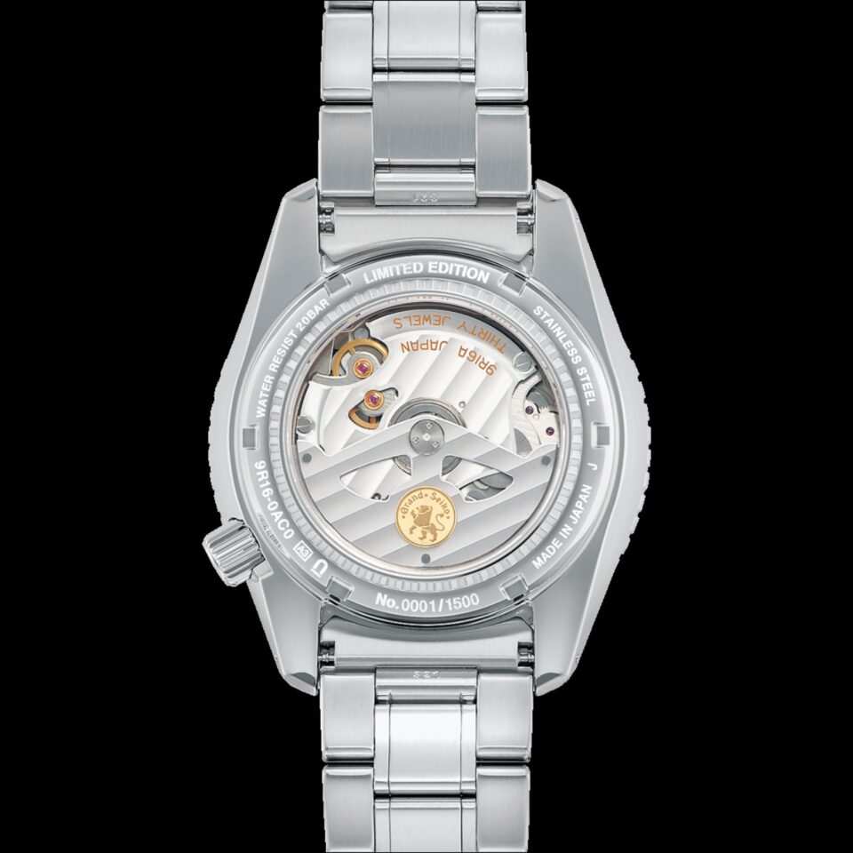 ขอบ Bezel วัสดุ Sapphire สีขาวสลับน้ำเงินพร้อมสเกล 24 ชั่วโมง หมุนได้ 2 ทิศทาง พร้อมเคลือบสารเรืองแสง Lumibrite ตัวเรือน Stainless Steel ขนาด 44 มิลลิเมตร หนา 14.9 มิลลิเมตร กันน้ำลึก 200 เมตร และป้องกันสนามแม่เหล็ก 4,800 A/m กับสาย Steel ขัดแต่งด้วยเทคนิค Zaratsu ฝาหลังแบบโปร่งใส สลักหมายเลขประจำเรือน xxxx/1500 ภายในขับเคลื่อนด้วยกลไก Spring Drive In-House Cal.9R16 สำรองพลังงาน 72 ชั่วโมง ที่มาพร้อมกับความเที่ยงตรงในระดับ +/- 10 วินาที/เดือน