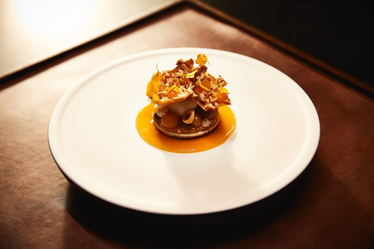 ตบท้ายด้วยเมนูของหวานที่มีถั่วเฮเซลนัทเป็นดาวเด่น ไอศกรีมเฮเซลนัทเสิร์ฟคู่กับเฮเซลนัทพราลีนซึ่งมีส่วนผสมของดาร์กช็อคโกแลตถึง 70 เปอร์เซ็นต์ เพิ่มเท็กซ์เจอร์และความสดชื่นด้วยเนื้อแอปริคอต และเติมความหอมหวานด้วยซอสเบอร์บอนวานิลลา