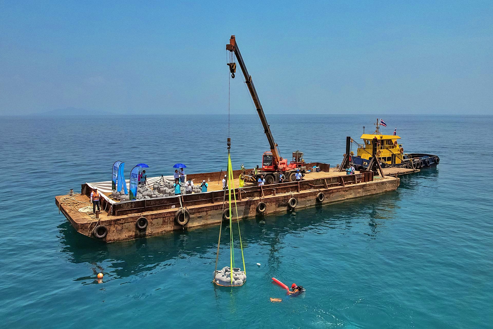 ปะการังเทียมที่ใช้ในการปล่อยลงสู่ทะเลในครั้งนี้ มีแบบสวยงามเสมือนปะการังจริงกลมกลืนกับธรรมชาติ โดยวัสดุที่ใช้ผลิตจากปูนนั้นเป็นมิตรต่อสภาพแวดล้อมและสิ่งมีชีวิตในท้องทะเล โดยมี calaium carbonate (แคลเซียม คอร์บอเนต)ที่เป็นอาหารสำหรับตัวอ่อนปะการังใช้ดักจับจากน้ำทะเลในธรรมชาติเพื่อเอามาสร้างเป็นที่อยู่อาศัยของตนเองอยู่แล้ว โดยทาง SCG พัฒนาแบบพื้นผิวให้เหมาะสมกับการยึดเกาะตัวอ่อนปะการังและดีไซน์ให้โครงสร้างมีความซับซ้อนเพื่อให้ เหมาะให้สิ่งมีชีวิตเข้าไปอยู่อาศัยและช่วยฟื้นฟูทรัพยากรทางทะเลได้อย่างยั่งยืนและยาวนานกว่า