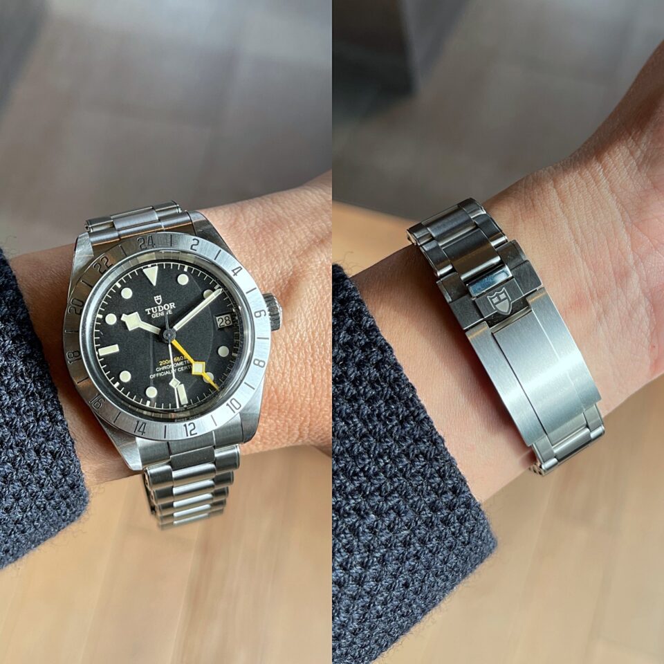 แล้วก็มาถึงพระเอกในงานกับ Black Bay Pro นาฬิกาสปอร์ตที่ได้กลิ่นไอวินเทจด้วยชุดเข็มและหลักชั่วโมง Snow Flake อันเลื่องชื่อของแบรนด์ โดยมาพร้อมกับฟังก์ชั่น GMT ที่บอกเวลาแบบ 24 ชั่วโมง และบอกเวลาในอีก Timezone ด้วยเข็ม Snow Flake สีเหลืองโดดเด่น ร่วมกับขอบ Fixed Bezel สลักสเกล 24 ชั่วโมง โดยมีให้เลือกทั้งสาย Steel, สายหนังวัวแท้เย็บด้ายสีเหลือง และสายผ้าสังเคราะห์สีดำทอสลับสีเหลือง