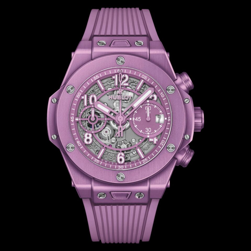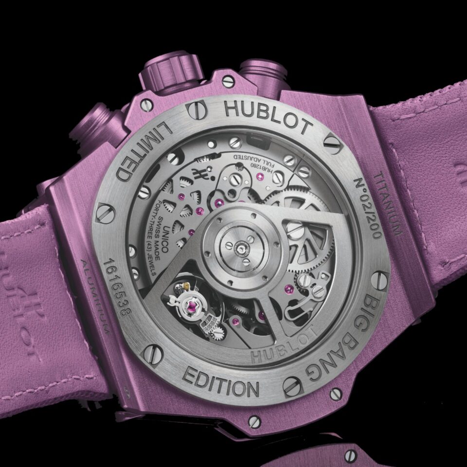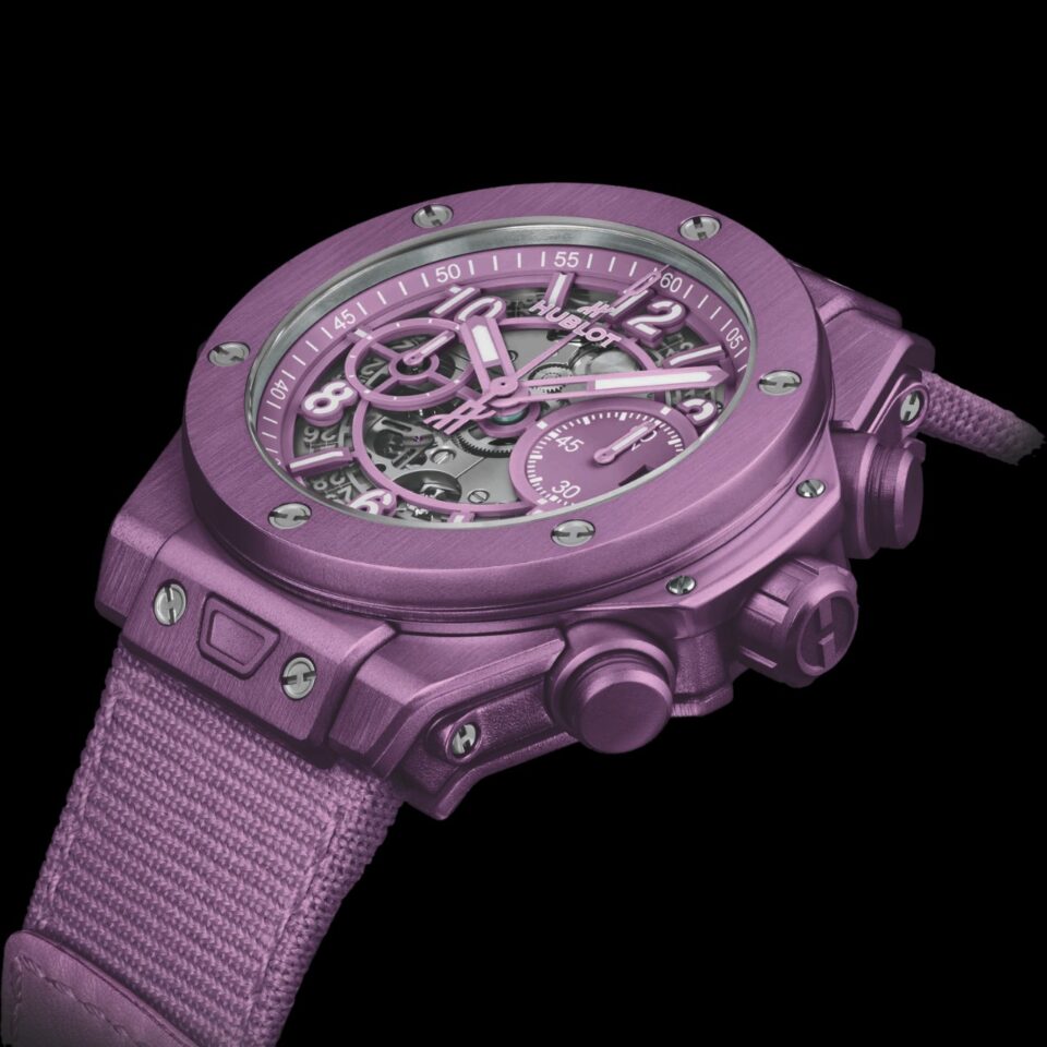 Hublot เลือกใช้สีม่วงที่กำลังเริ่มมาแรงในวงการแฟชั่น มาใส่ลงในนาฬิกาที่มีเอกลักษณ์เฉพาะตัวชัดเจนอย่าง Big Bang รุ่นพิเศษ ที่ใช้ตัวเรือนวัสดุ Aluminum ซึ่งน้อยแบรนด์นักที่จะใช้วัสดุชนิดนี้ จึงทำให้ตัดสินใจไม่ยากเลยสำหรับแฟน ๆ ของแบรนด์และนักสะสมผู้ชื่นชอบนาฬิกาที่โดดเด่นและแตกต่างอย่างแท้จริง
