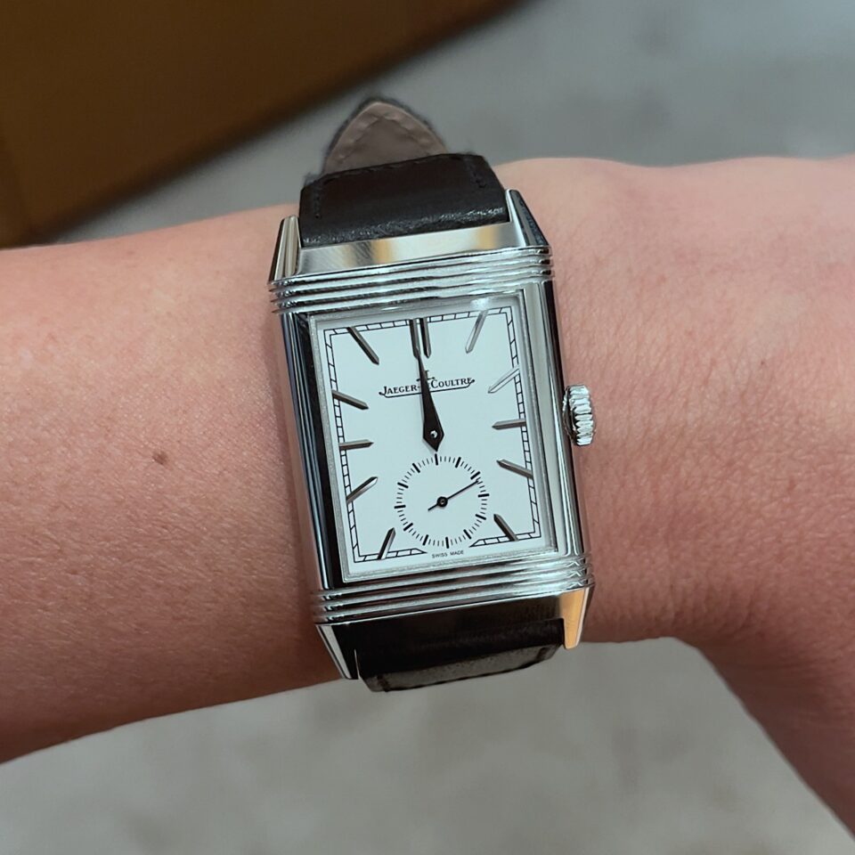 ปิดท้ายด้วยการอัพเดทนาฬิกา Reverso Tribute Monoface Small Seconds ตัวเรือน Steel ที่มาพร้อมกับหน้าปัดสีใหม่ในโทนสีขาวตัดกับชุดเข็มชั่วโมง-นาที-วินาที และหลักชั่วโมงเคลือบ Rhodium ที่เหลือบสีดำยามกระทบกับแสง ซึ่งทำให้อ่านค่าเวลาได้ง่ายและเรียบหรูใส่ได้ทุกโอกาส โดยมาพร้อมกับสายหนัง Fagliano สีดำเย็บประกบกับผ้าใบสีเทาดำ