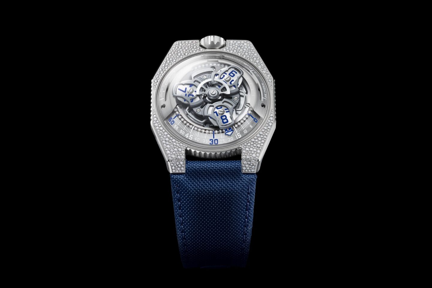 สะท้อนภาพเรื่องราวของดวงดาวและกลุ่มดาวฤกษ์อันห่างไกล ความงดงามที่สอดแทรกด้วยความหรูหรา แสงวาบเพียงพริบตาของสายฟ้าที่ตกสะท้อนผ่านตัวเรือนที่โปร่งใสของนาฬิกา UR-100V Stardust ถือเป็นผลงานที่โดดเด่นสะดุดตาที่สุดจาก URWERK แบรนด์นาฬิกาที่มีเอกลักษณ์เฉพาะตัว อัญมณีน้ำงามจำนวน 400 เม็ด (สี D, VVS1) ได้รับการคัดสรรอย่างพิถีพิถัน