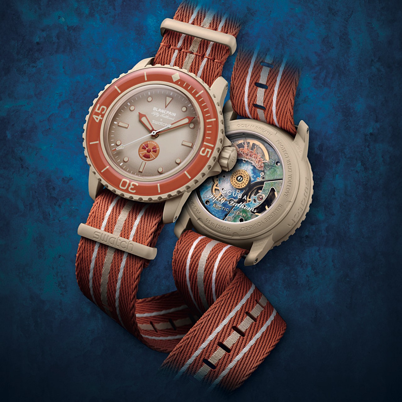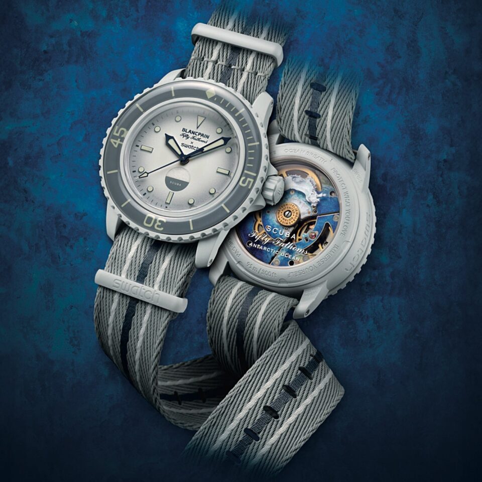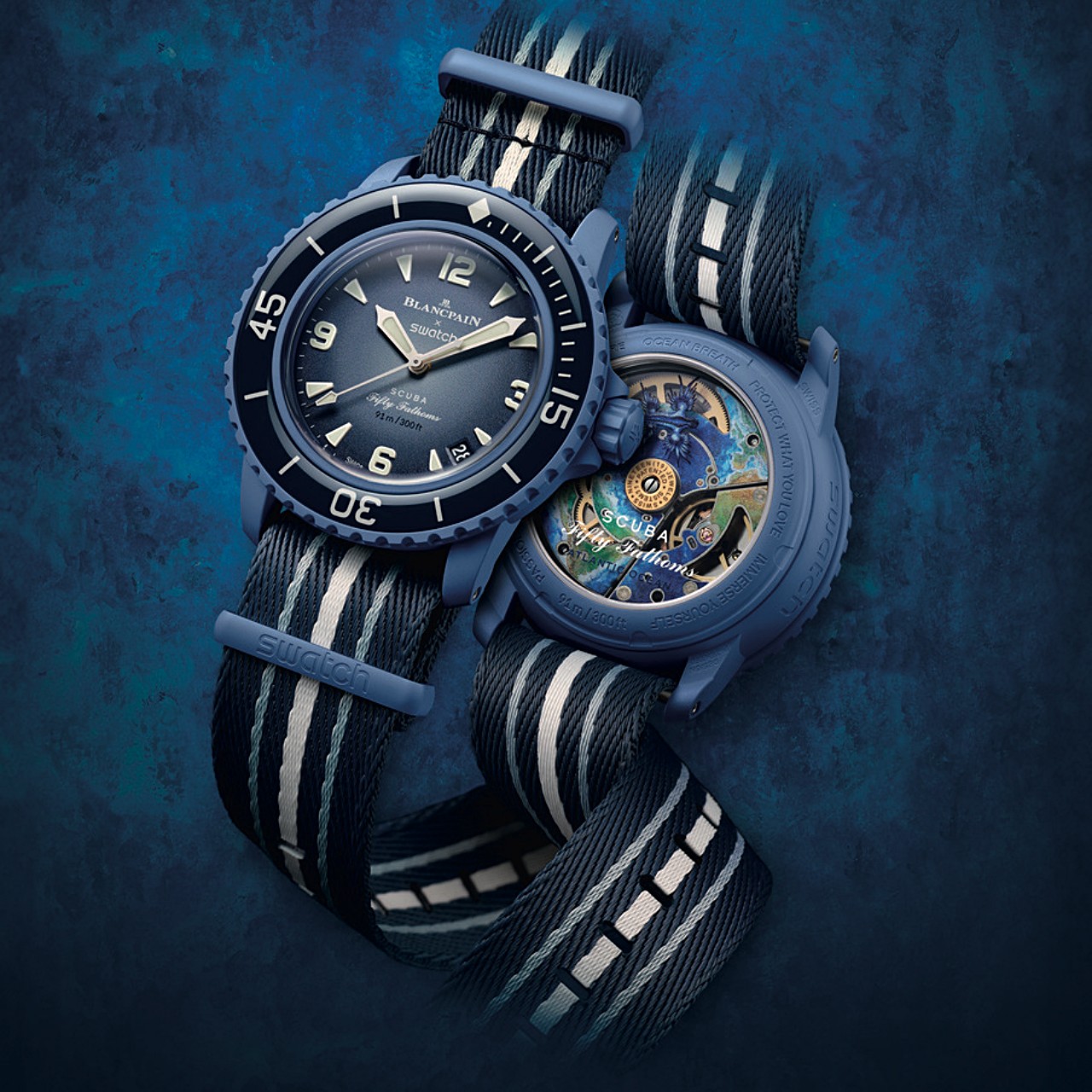 ในช่วงต้นปี 2022 ที่ผ่าน SWATCH ได้สร้างแรงกระเพื่อมครั้งใหญ่ให้กับวงการนาฬิกา ด้วยการเปิดตัว SWATCH Bioceramic MoonSwatch Collection นาฬิกาแห่งยุคในโปรเจคพิเศษ ‘SWATCH X Omega’ โดยเป็นการนำเอาวัสดุไฮเทคแห่งยุคที่เรียกว่า Bioceramic กับ ‘Speedmaster’ นาฬิกาจับเวลาสุดคลาสสิกตลอดกาลจาก Omega และโด่งดังไปทั่วโลกในฐานะนาฬิกาเรือนแรกที่ลงไปสำรวจดวงจันทร์พร้อมนักบินอวกาศ NASA ในปี 1969จนมาถึงปีนี้ SWATCH กำลังจะสร้างปรากฎการณ์ใหม่อีกครั้ง โดยร่วมมือกับ Blancpain แบรนด์นาฬิกาที่เก่าแก่ที่สุดในโลก เพื่อผลิตนาฬิกาคอลเลกชั่นพิเศษขึ้นมา โดยเกิดจากการที่แบรนด์ Blancpain ได้ร่วมวางรากฐานของโครงการสำรวจใต้สมุทรและโครงการอนุรักษ์มหาสมุทรมากมาย ซึ่งเป็นส่วนหนึ่งของ Blancpain Ocean Commitment มาเป็นแรงบันดาลใจในการออกแบบ โดยแบ่งนาฬิกาออกเป็น 5 รุ่น ตามจำนวนมหาสมุทรทั้ง 5 แห่งในโลก