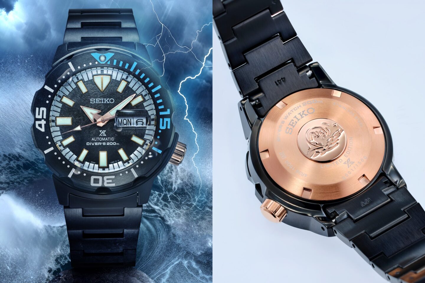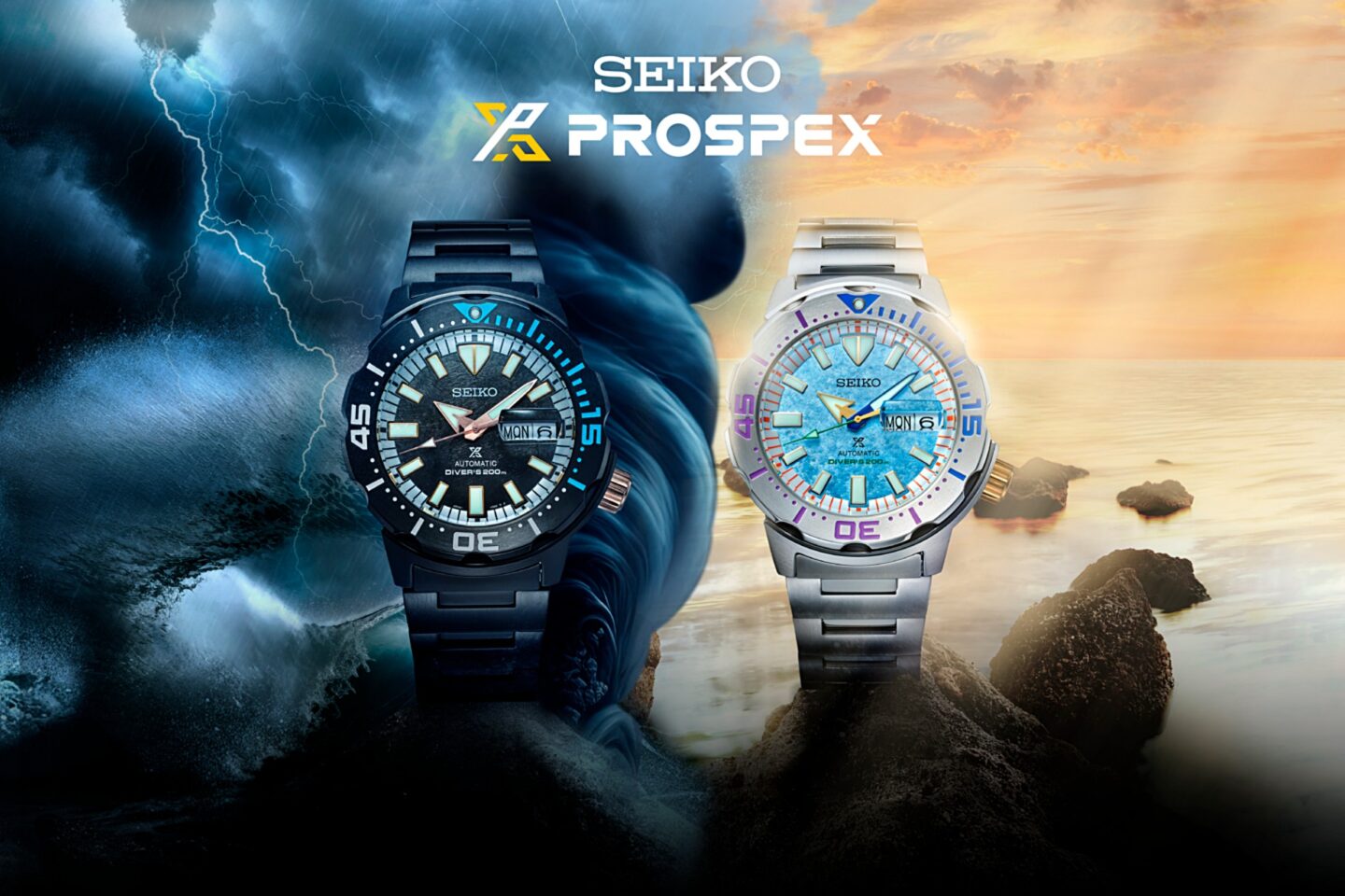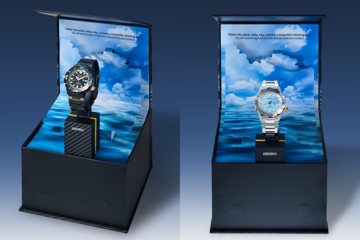 Seiko Thailand นำเสนอนาฬิการุ่นพิเศษ 2 รุ่น 2 สไตล์ ที่ได้แรงบันดาลใจจากปรากฏการณ์ธรรมชาติสองแบบที่พบเจอได้จากท้องฟ้า ที่ผ่านความเปลี่ยนแปลงของก้อนเมฆที่มืดครึ้มจนกลายเป็นพายุ และท้องฟ้าอันสดใสผ่องอำไพหลังพายุพัดผ่านไป โดยใช้พื้นฐานตัวเรือนจากนาฬิการุ่น New Monster ที่ขึ้นแท่นนาฬิกาดำน้ำยุคใหม่ยอดนิยมจากแฟน Seiko ทั่วโลก