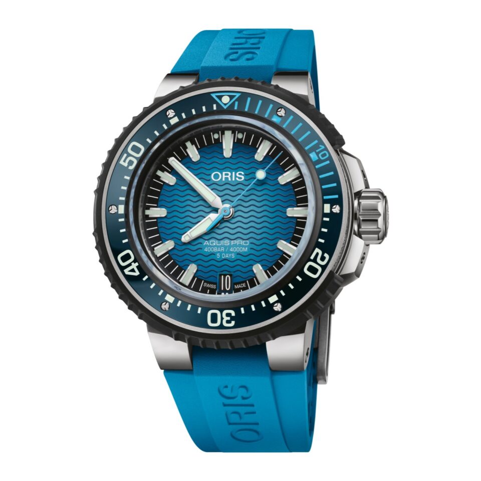 Oris AquisPro 4000m ประดิษฐกรรมนาฬิกาไดฟ์เวอร์ที่กันน้ำได้ถึงระดับลึกที่สุดเท่าที่ ORIS เคยผลิตมา ด้วยตัวเรือนไทเทเนียมที่สามารถทนต่อแรงดันได้สูงถึง 400 บาร์ (เทียบเท่ากับความลึก 4,000 เมตร) เต็มเปี่ยมไปด้วยเทคโนโลยีที่ได้รับการจดสิทธิบัตรของ Oris ซึ่งรวมถึงวงแหวนขอบหน้าปัดนิรภัย Rotation Safety System ที่ออกแบบขึ้นด้วยความร่วมมือระหว่าง ORIS และนักดำน้ำมืออาชีพเพื่อล็อคไม่ให้วงแหวนขอบหน้าปัดที่ถูกเซ็ตเวลาในการดำน้ำเกิดหมุนเองในระหว่างการใช้งาน และระบบขยายเฟืองล็อคสายนิรภัยแบบบานพับแบบเฉพาะของ ORIS ที่สามารถปรับให้คลายหรือกระชับสายได้อย่างง่ายดายในขณะที่กำลังสวมใส่นาฬิกา นอกจากนี้ยังขับเคลื่อนด้วย Oris Calibre 400 กลไกจักรกลออโตเมติกอันเปี่ยมประสิทธิภาพสูง สำรองพลังงานได้นานถึง 5 วัน