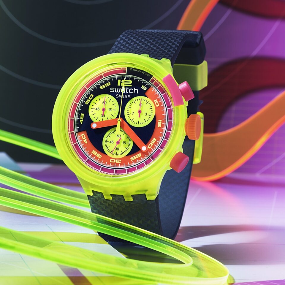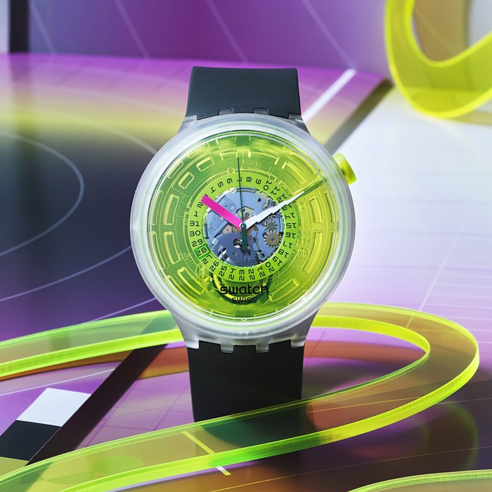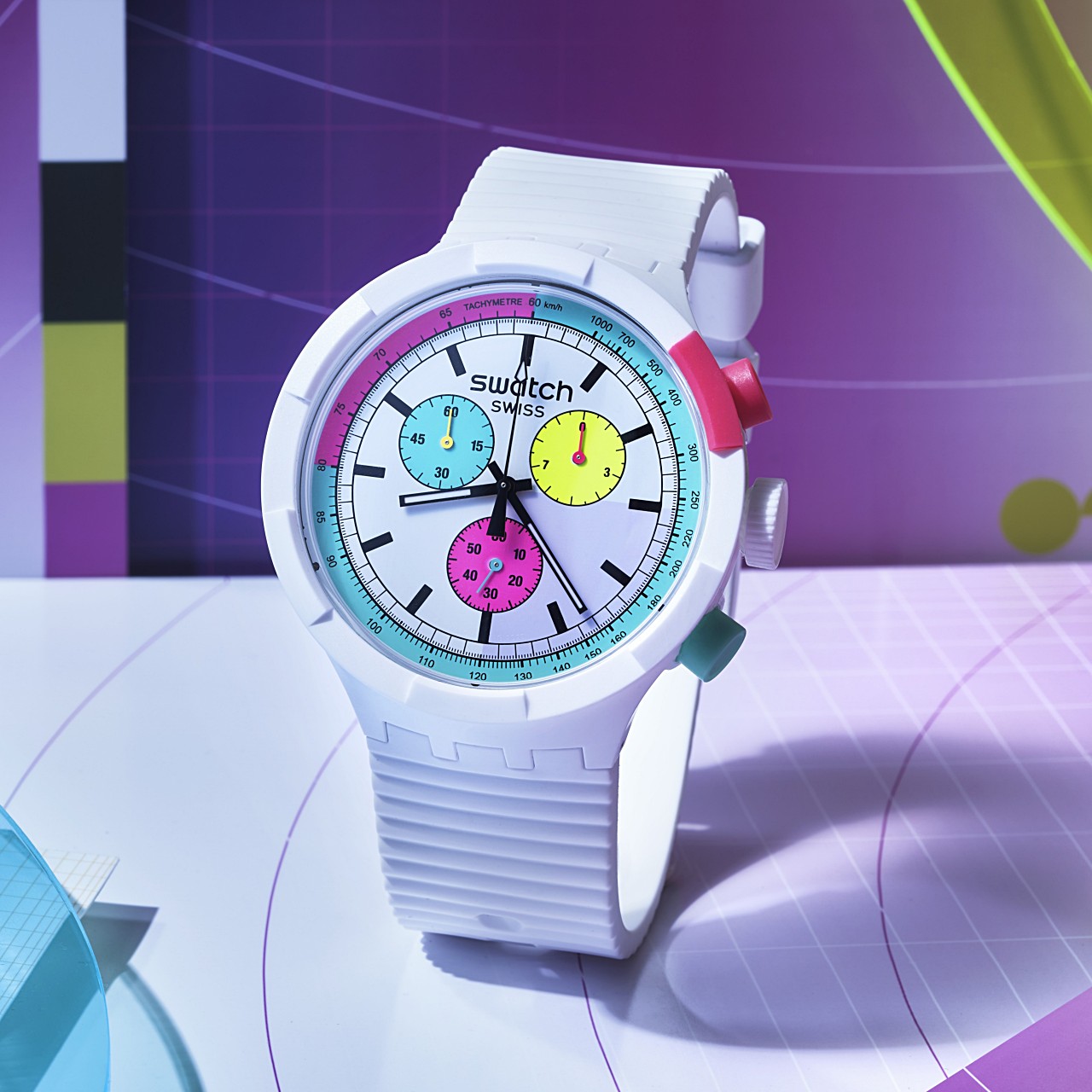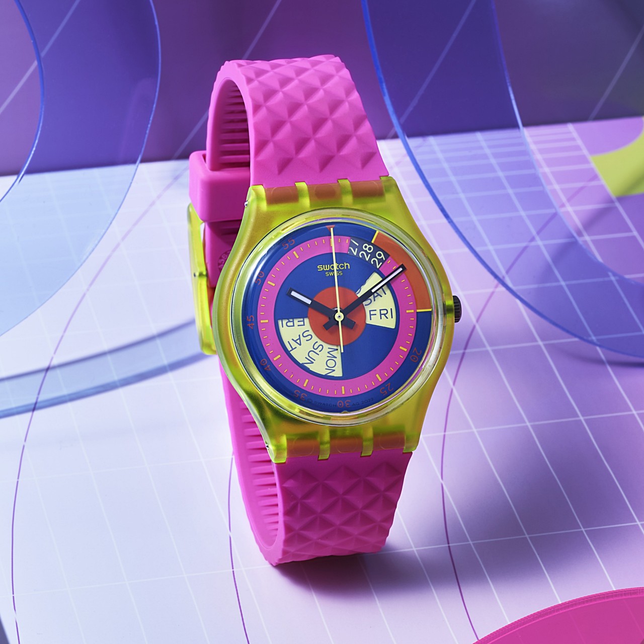 SWATCH บอกเล่าเรื่องราวของคอลเล็กชั่นนี้ผ่านการหวนคิดถึงอนาคต (Future Nostalgia) ด้วยการหยิบนำดีไซน์ที่จัดจ้านและจิตวิญญาณของศิลปะในยุค 80 และ 90 มาถ่ายทอดลงบนเรือนนาฬิกา รังสรรค์ออกมาเป็นนีออนคอลเล็กชั่นที่ผลิตจากวัสดุชีวภาพ มีขนาดใหญ่ขึ้น พร้อมกับสีสันสดใสโดดเด่นที่พร้อมเปล่งพลังบวกในทุกครั้งที่สวมใส่ ให้สาวกสวอท์ชได้หวนคิดถึงดีไซน์สุดคลาสสิก อีกทั้งยังสามารถดึงดูดคนรุ่นใหม่ที่ชื่นชอบในสีสันและความสนุกสนานในคราวเดียวกัน