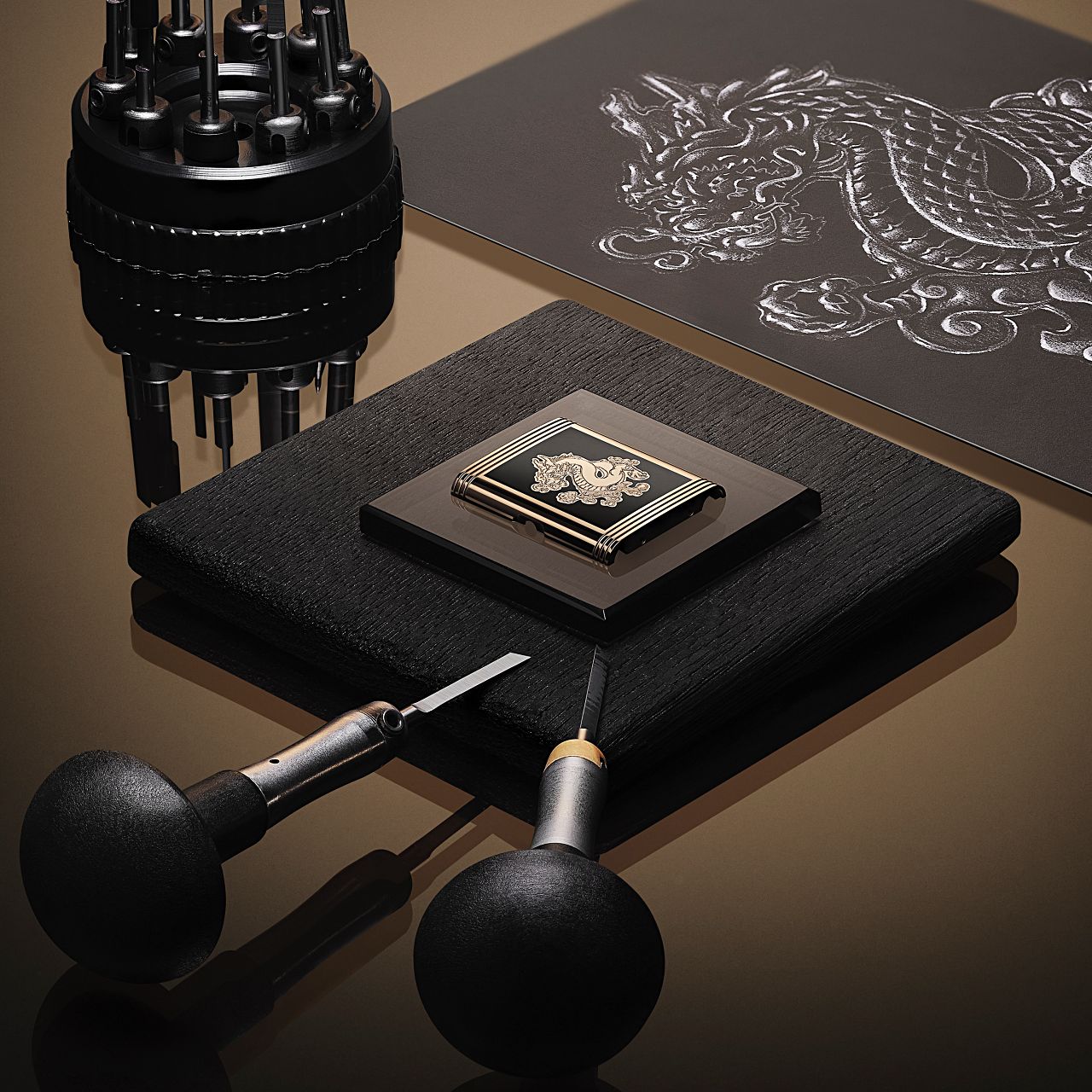 โดยรายละเอียดทั้งหมดนี้ ช่างแกะสลักระดับปรมาจารย์ของ JLC ใช้เทคนิคที่เรียกว่า Modelled engraving ซึ่งเป็นทักษะที่ต้องใช้สมาธิและความชำนาญอย่างมาก ซึ่งเริ่มต้นการแกะสลักด้วยสิ่วที่มีขนาดแตกต่าง ๆ ถึง 10 ชิ้น ลงไปบนพื้นผิวที่มีการเคลือบ Enamel ด้วยเทคนิค Grande Feu ก่อนแล้ว ซึ่งต้องการความแม่นยำอย่างที่พลาดไม่ได้เลยแม้แต่นิดเดียว