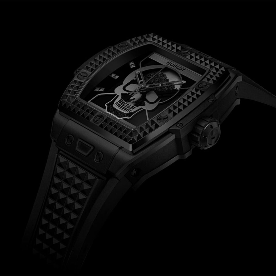 จากวิสัยทัศน์ที่คล้ายคลึงกันทำให้ Hublot และ Depeche Mode ร่วมมือกันอีกครั้งในกรุงเบอร์ลิน 11 ปี หลังจากการร่วมงานกันครั้งแรกที่เมืองหลวงของเยอรมนี ด้วยการเปิดตัวนาฬิกาที่มาพร้อมกับความเท่ในโทนสีดำสนิทไอคอนิกในแบบ All Black สร้างสรรค์ขึ้นด้วยความร่วมมือกับ Depeche Mode โดยมีการผสมผสานลวดลายหัวกะโหลก ซึ่งเป็นสัญลักษณ์ที่เห็นในวิดีโอการกลับมาของวงดนตรีนี้ พร้อมตกแต่งด้วยรูปทรงนาฬิกาทรายเพื่อสะท้อนถึงการก้าวข้ามผ่านกาลเวลา โดยส่วนกลางหน้าปัดนาฬิกาบรรจุเม็ดเซรามิกสีดำทรงกลมลูกเล็กๆ ซึ่งสามารถเคลื่อนที่ไปมาได้ในขณะที่เคลื่อนไหวข้อมือที่สื่อถึงแนวคิดของ Memento Mori