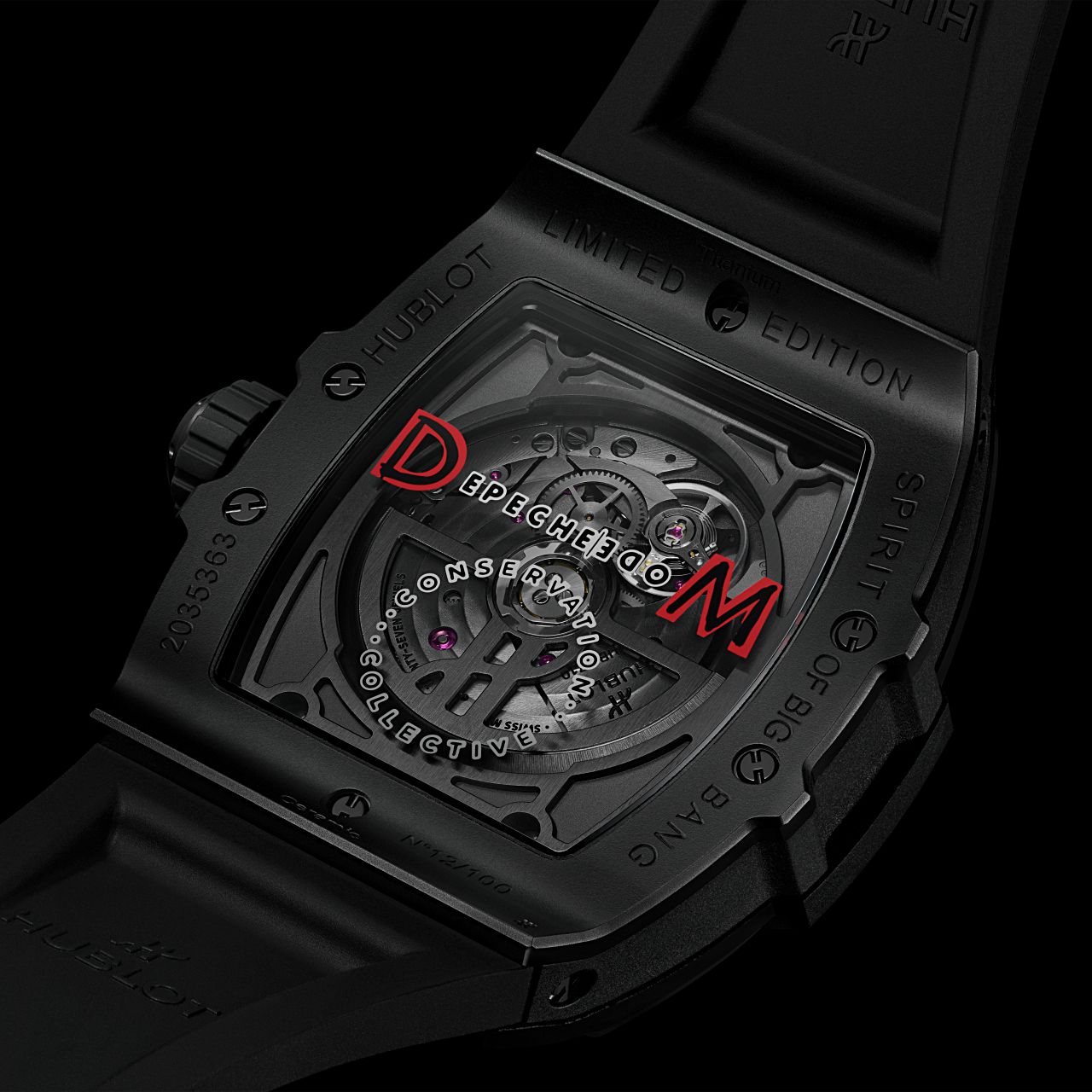 ตัวเรือนทรง Tonneau ผลิตจากวัสดุ Ceramic ขนาด 42 มิลลิเมตร หนา 13.8 มิลลิเมตร กันน้ำลึก 100 เมตร และมาพร้อมกับสายยางสีดำปั๊มลวดลาย Clous de Paris โดยใช้ฝาหลังแบบโปร่งใสโดยมีการพิมพ์โลโก้ชื่อวง Depeche Mode ที่โชว์การทำงานของกลไก Automatic Cal.HUB1710 ความถี่ 28,800 ครั้ง/ชั่วโมง สำรองพลังงาน 50 ชั่วโมง โดยกลไกมีการเคลือบผิวในโทนสีดำที่ยิ่งเพิ่มความคมเข้มให้กับนาฬิการุ่นนี้มากยิ่งขึ้น