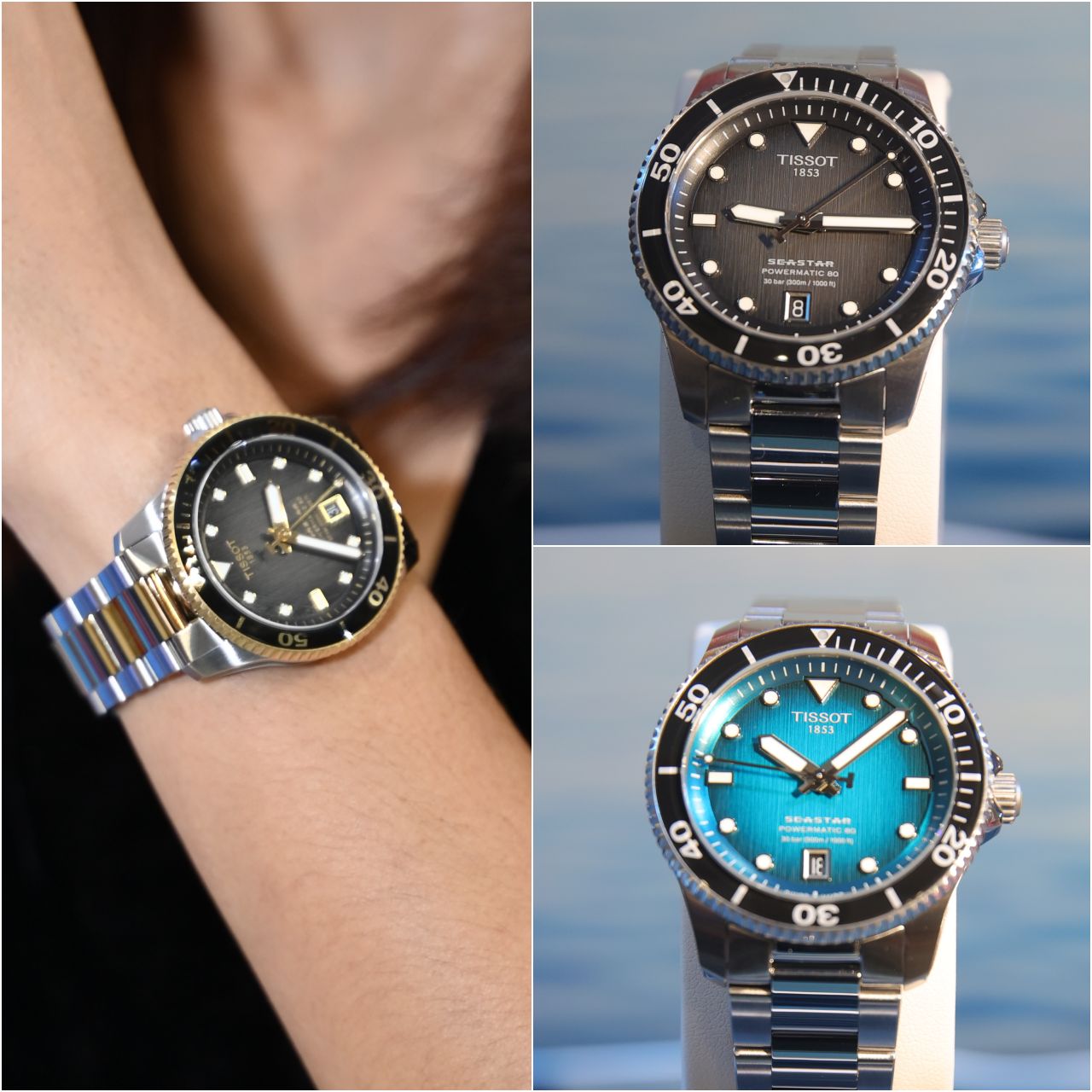 เริ่มต้นที่ รุ่นแรกมีหน้าปัดโทนสีฟ้า Turquoise และหน้าปัดโทนสีเทาไล่ระดับสี ราคา 27,000 บาท ส่วนรุ่นต่อมาเป็นรุ่นที่มีดีไซน์แบบสองสีที่ให้รูปลักษณ์ที่โดดเด่น โดยมีการแต่งบริเวณขอบ Bezel เคลือบ PVD สีเหลืองทอง พร้อมวงแหวนสีดำ ซึ่งเข้ากันได้ดีกับสายนาฬิกา Stainless Steel แบบ 2 Tone ราคา 29,500 บาท และ 2 รุ่นสุดท้ายมาพร้อมกับรูปลักษณ์ของตัวเรือนที่ค่อนข้างหายากสำหรับในคอลเลกชัน Seastar โดยจะมีตัวเรือน Stainless Steel เคลือบ PVD สีดำทั้งเรือน ราคา 29,500 บาท และรุ่นหน้าปัดโลหะขัดลายสีน้ำเงินเข้าคู่กับสายนาฬิกาซิลิโคนสีดำ Tropic ราคา 27,400 บาท