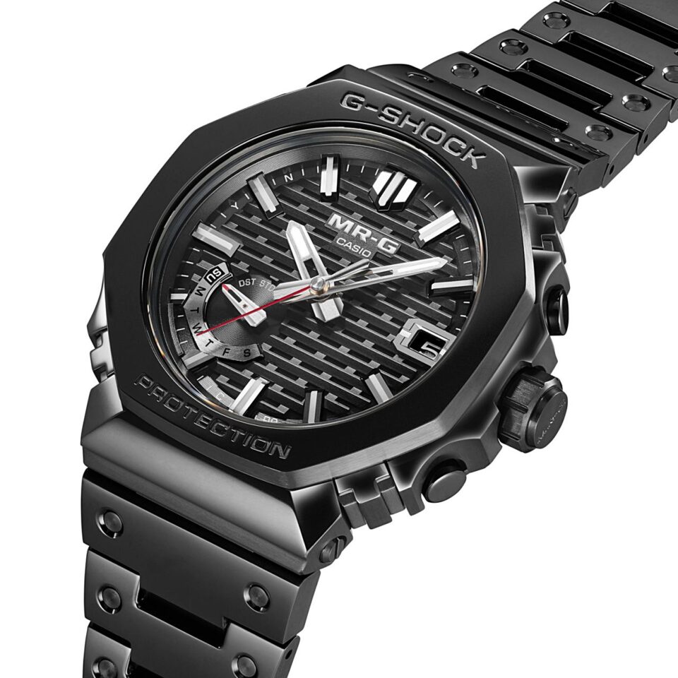 นาฬิการุ่นนี้ยังมาพร้อมกับฟังก์ชันที่ทันสมัยและครบครัน เช่น ระบบการเชื่อมต่อ Bluetooth เพื่อการปรับตั้งเวลาอัตโนมัติ ระบบพลังงานแสงอาทิตย์ที่ช่วยให้ไม่ต้องกังวลเรื่องการเปลี่ยนแบตเตอรี่ รวมถึงการกันน้ำลึกถึง 200 เมตร และการทนต่อแรงกระแทกที่เป็นเอกลักษณ์ของ G-SHOCK ทำให้นาฬิการุ่นนี้เป็นที่น่าประทับใจและเหมาะสำหรับผู้ที่ต้องการความทนทานและสไตล์ที่โดดเด่น จึงนับเป็นการผสมผสานระหว่างความงามอันประณีตของโลหะกับความแข็งแกร่งทนทานอันเป็นเอกลักษณ์ของ G-SHOCK จนกลายเป็นดีไซน์ที่คู่ควรกับชื่อของ MR-G อย่างแท้จริง