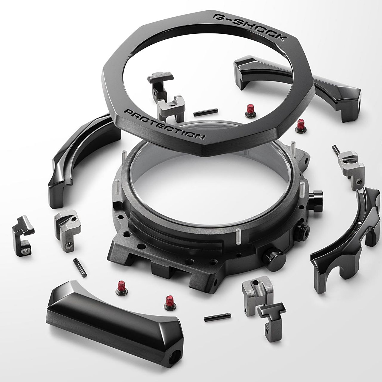 ชิ้นส่วนภายนอกได้รับการขัดเงาทีละชิ้นโดยช่างฝีมือชั้นยอด จากนั้นจะได้รับการประกอบเข้าด้วยกันอย่างพิถีพิถันเฉกเช่นเดียวกับงานไม้ คิกุมิ ซึ่งพัฒนาขึ้นในญี่ปุ่น CASIO จึงประสบความสำเร็จในการออกแบบตัวเรือนภายนอกที่ได้รับการรับประกันทั้งความแข็งแกร่งและความสวยงาม ขณะที่ตัวเรือน ฝาหลัง และปุ่มกดต่างๆ ได้รับการผลิตจากโลหะผสมไทเทเนียม Ti64 แบบพิเศษ ตัวโครงสร้างของตัวเรือนประกอบจากชิ้นส่วนมากถึง 27 ชิ้น โดยแต่ละชิ้นจะได้รับการขัดแต่งอย่างสวยงามก่อนที่จะประกอบลงบนตัวเรือน แสดงให้เห็นถึงความปราณีตของงานฝีมือเชิงศิลปะ