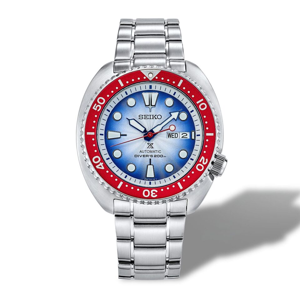 Seiko ได้นำสีสันและความสง่างามของ “ปลากัดไทย” มาถ่ายทดลงบนนาฬิกาสปอร์ตตำน้ำรุ่นพิเศษจากตระกูล Prospex ด้วยสีสันที่เป็นเอกลักษณ์ของธงชาติไทย (น้ำเงิน ขาว แดง) ซึ่งแสดงผ่านหน้าปัดสลักลวดลายคลื่นที่ไล่เฉดสีจากน้ำเงินเข้มไปสู่ขาวตัดกับขอบ Bezel กับ Dinving Scale Insert สีแดงสด ร่วมกับเข็มชั่วโมง-นาทีสีน้ำเงิน เข็มวินาทีสีแดง รวมทั้งหลักชั่วโมงมีการเคลือบสารเรืองแสง Lumibrite มีหน้าต่างวัน-วันที่ตรงตำแหน่ง 3 นาฬิกา ใช้กระจกหน้าปัด Hardlex