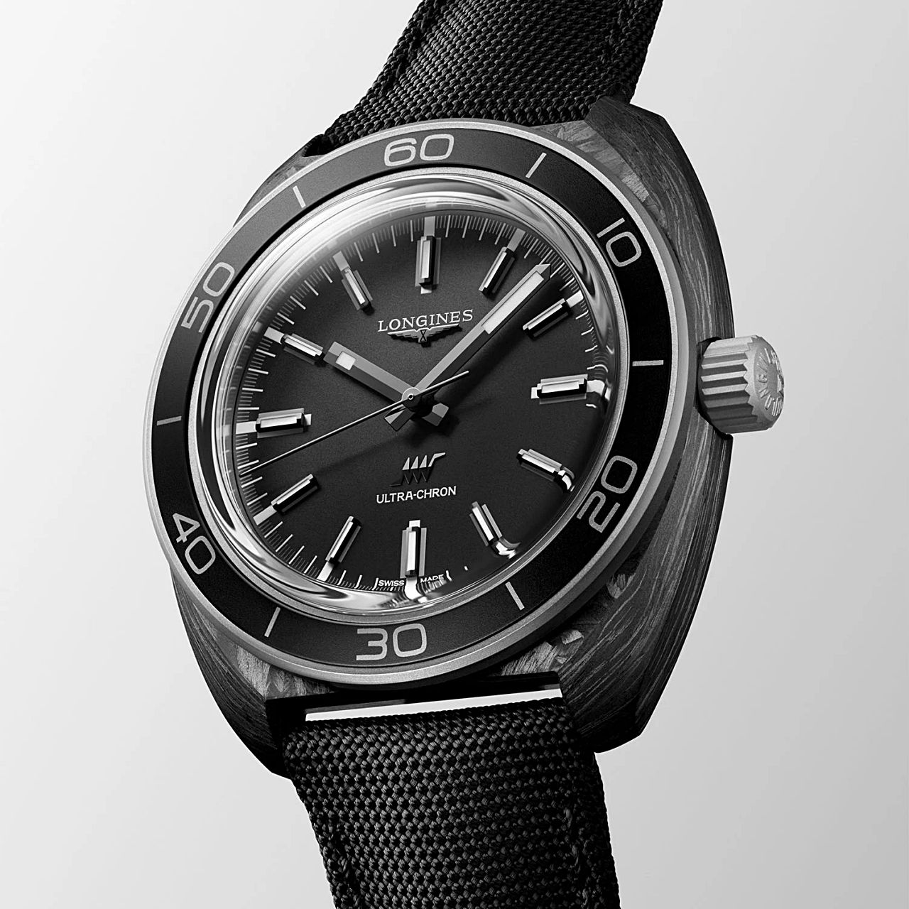 เรียกว่าเป็นการเปิดศักราชใหม่อย่างแท้จริง ด้วยการนำวัสดุสุดล้ำแห่งยุคอย่าง Carbon มาใช้เป็นครั้งแรกกับนาฬิกา Longines ที่มีประวัติความเป็นมายาวนานและสร้างผลงานในระดับนวัตกรรมไว้อย่างมากมาย เช่นเดียวนาฬิกา Ultra-Chron Diver Carbon เรือนนี้