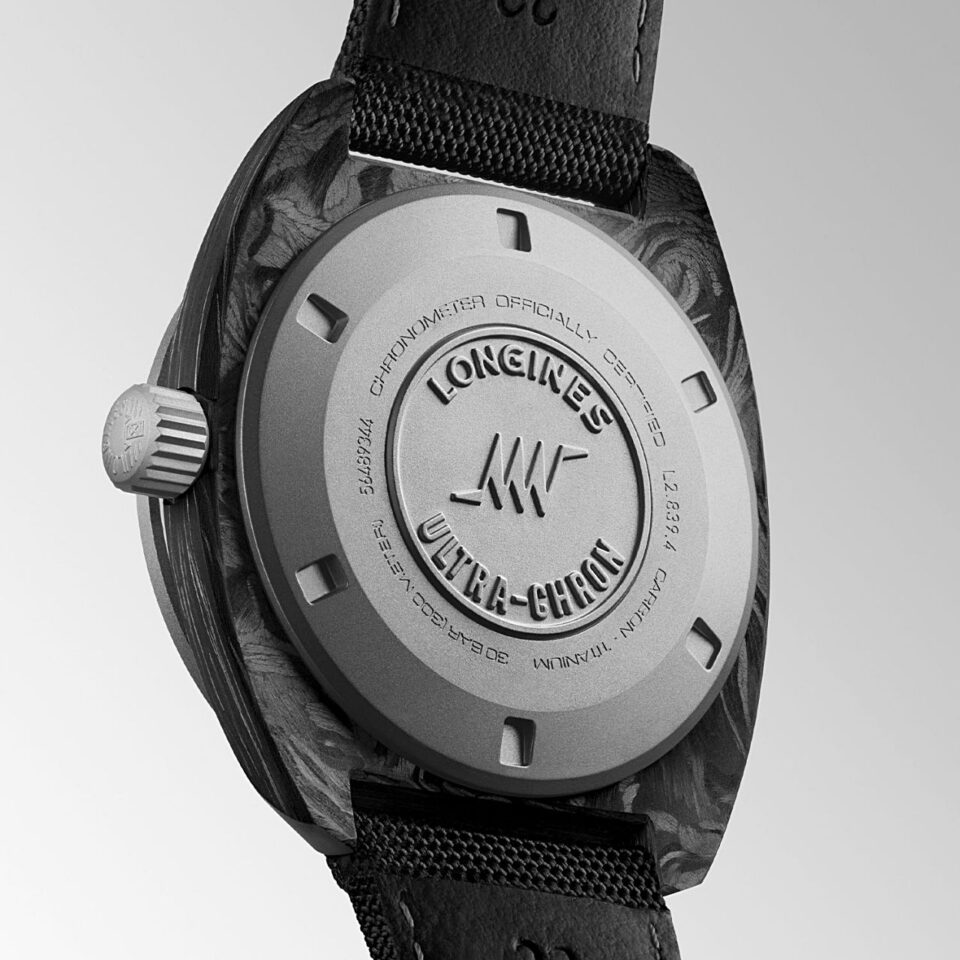 มาถึงปีนี้ Logines ได้สร้างปรากฏการณ์ใหม่เป็นครั้งแรกของแบรนด์ ด้วยการนำ Carbon วัสดุสุดล้ำแห่งยุคที่มีน้ำหนักเบาแต่แข็งแรง มาใช้กับตัวเรือนของคอลเลกชัน Ultra-Chron ร่วมกับหน้าปัดสีดำสนิทที่มีการขัดแต่งผิวแบบด้าน ตัดกับสารเรืองแสง Super Luminova ที่ถูกเคลือบไว้บนหลักชั่วโมงและชุดเข็มชั่วโมง-นาทีทรง Baton และใช้กระจกหน้าปัด Sapphire ทรง Boxed และขอบ Bezel Titanium แบบ Fixed พร้อม Diving Scale Insert ที่ผลิตจากวัสดุ Aluminium ที่ให้อารมณ์วินเทจ