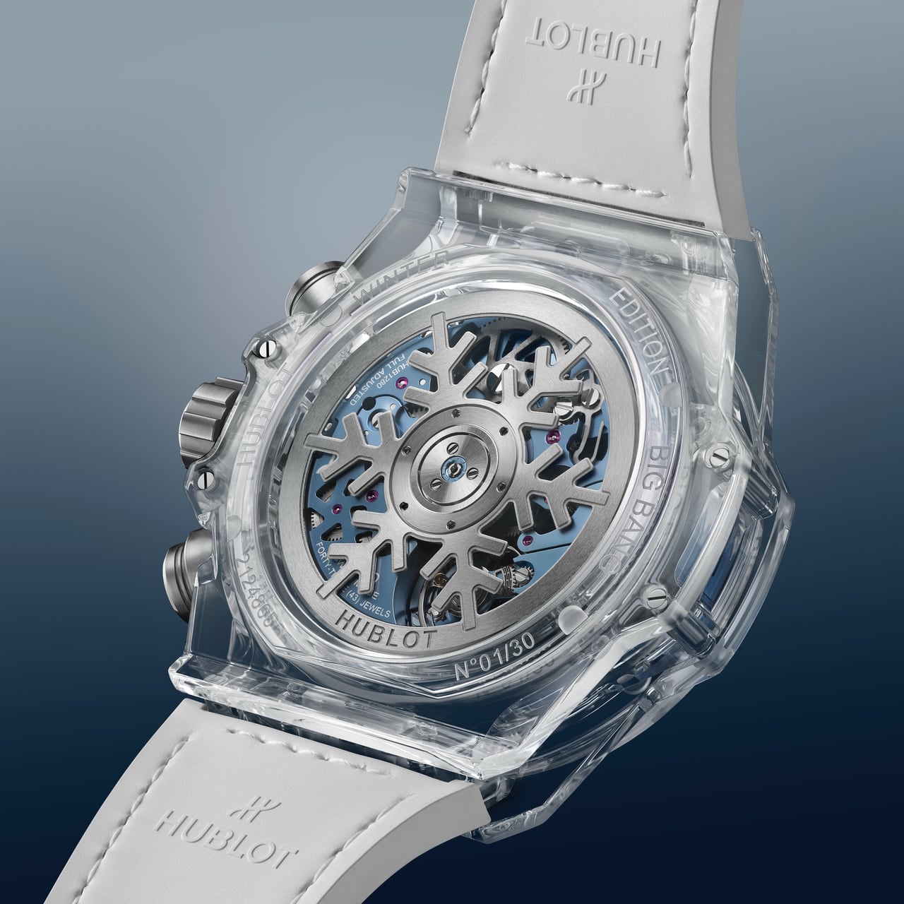 สำหรับรุ่น Winter Editions ทั้งสองรุ่นนี้มาพร้อมกับ Openworked Dial ที่เผยให้เห็นความซับซ้อนของกลไกภายในอย่างชัดเจน หน้าปัดเจาะโปร่งถูกตกแต่งด้วย Light Blue Accents พร้อมด้วย Index และ Arabic Numerals ที่ลอยอยู่เหนือ Movement โดยทั้งหมดเคลือบด้วย Super-LumiNova เข็มแสดงวินาทีของ Chronograph กลางมีปลายรูปทรง Oblong และ Counterweight รูปตัว H อันเป็นเอกลักษณ์ ฟังก์ชัน Chronograph 60-minute ถูกจัดวางที่ตำแหน่ง 3 นาฬิกา ซึ่งมี Date Window แบบ Translucent Disc ที่แสดงผลวันที่อยู่ภายใน และสามารถมองเห็น Column Wheel ที่ควบคุมการทำงานของกลไก Chronograph ได้ที่ช่องเปิดตำแหน่ง 6 นาฬิกา กระจกหน้าปัดเป็น Sapphire Crystal ที่ทนทานต่อรอยขีดข่วนตามมาตรฐาน