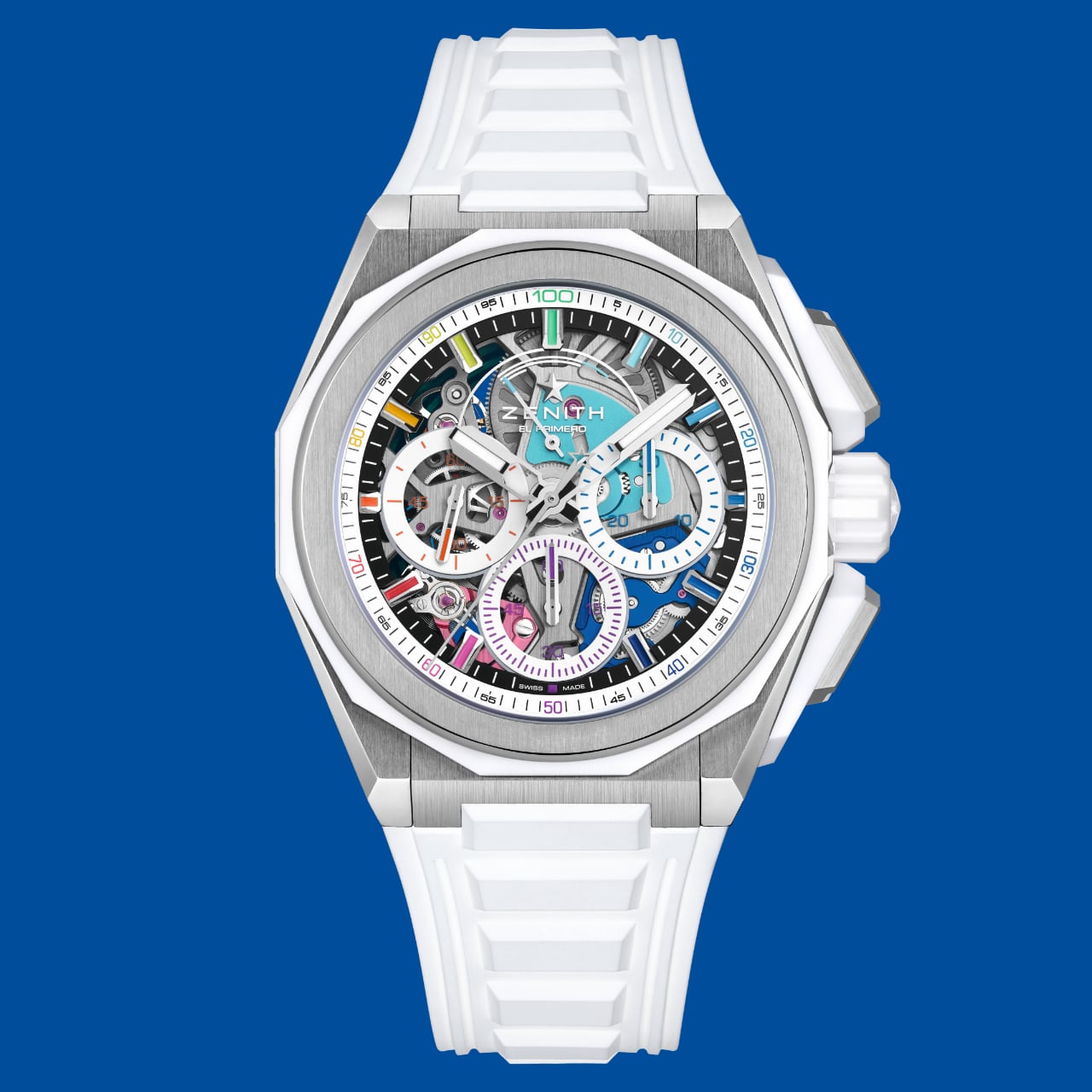 Zenith Defy Extreme Chroma Editions แสดงให้เห็นถึงความกล้าหาญในการนำเสนอเทคโนโลยีชั้นสูงและสุนทรียศาสตร์ที่โดดเด่นเข้าไว้ด้วยกันอย่างลงตัว ตัวเรือนไทเทเนียมผสมเซรามิกที่มีขนาดถึง 45 มิลลิเมตร ถือเป็นภาพลักษณ์ของนาฬิกาสปอร์ตยุคใหม่ที่เต็มไปด้วยพลัง ขณะที่กลไก El Primero 9004 ที่มีความสามารถในการวัดค่า 1/100th of a second นั้น ถือเป็นเครื่องยืนยันถึงความเชี่ยวชาญด้านโครโนกราฟของ Zenith ได้อย่างไม่มีข้อกังขา การใช้สีรุ้งบนองค์ประกอบภายในและภายนอกอย่างมีชั้นเชิง ไม่เพียงแต่สร้างความสะดุดตา แต่ยังเสริมให้หน้าปัด Openworked มีมิติที่น่าค้นหามากขึ้น นาฬิการุ่นนี้จึงเป็นตัวเลือกที่น่าสนใจอย่างยิ่งสำหรับนักสะสมที่ต้องการทั้งสมรรถนะสูงสุดและงานออกแบบที่มีเอกลักษณ์เฉพาะตัว