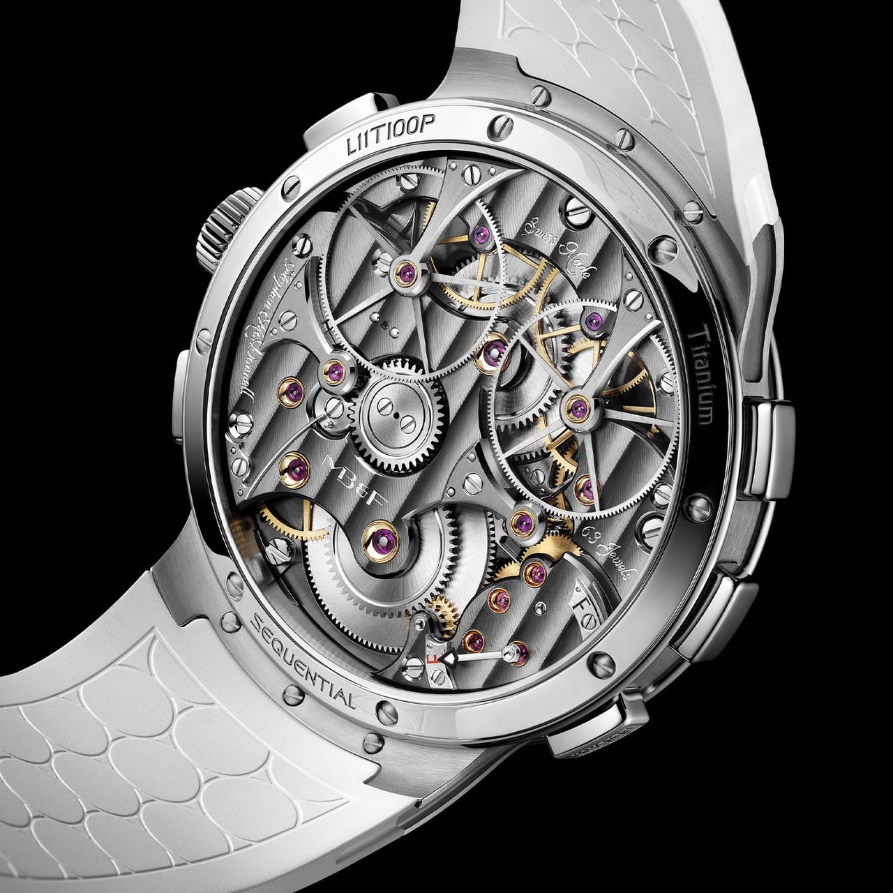 ตัวเรือนขนาด 44 มิลลิเมตร หนา 18.2 มิลลิเมตร ผลิตจากวัสดุ Titanium Grade 5 ที่มีน้ำหนักเบาและทนทานสูง โครงสร้างด้รับการเสริมระบบ FlexRing ซึ่งเป็นตัวซับแรงกระแทกที่ติดตั้งไว้ระหว่างตัวเรือนและกลไก ช่วยปกป้องการทำงานภายในจากแรงสั่นสะเทือนได้เป็นอย่างดี มาพร้อมความสามารถในการกันน้ำที่ระดับ 80 เมตร โดดเด่นด้วยขาตัวเรือนแบบฉลุโปร่ง เม็ดมะยมแบบขันเกลียว และปุ่มกดโครโนกราฟ 4 ปุ่ม พร้อมปุ่ม Twinverter พิเศษที่ตำแหน่ง 9 นาฬิกา ภายในขับเคลื่อนด้วยกลไกไขลานด้วยมือที่ประกอบขึ้นจากชิ้นส่วนถึง 621 ชิ้น ทำงานด้วยความถี่ 21,600 ครั้งต่อชั่วโมงและมีพลังงานสำรองนานถึง 72 ชั่วโมง (3 วัน) จากกระปุกลานคู่ กลไกชุดนี้คือรหัส LM Sequential ที่รวมเอาระบบ Flyback และ Twinverter เข้าไว้ด้วยกัน ทำให้สามารถเลือกโหมดจับเวลาได้หลากหลาย ทั้งแบบอิสระ, พร้อมกัน หรือแบบจับเวลาต่อรอบ โดยมีการเคลือบสะพานจักรด้วยสีเข้มแบบ NAC Finish ตัดกับงานขัดลบมุมด้วยมือที่แวววาว สายนาฬิกาแบบ Integrated Rubber สีขาว พร้อมตัวล็อกแบบพับผลิตจาก Titanium Grade 5