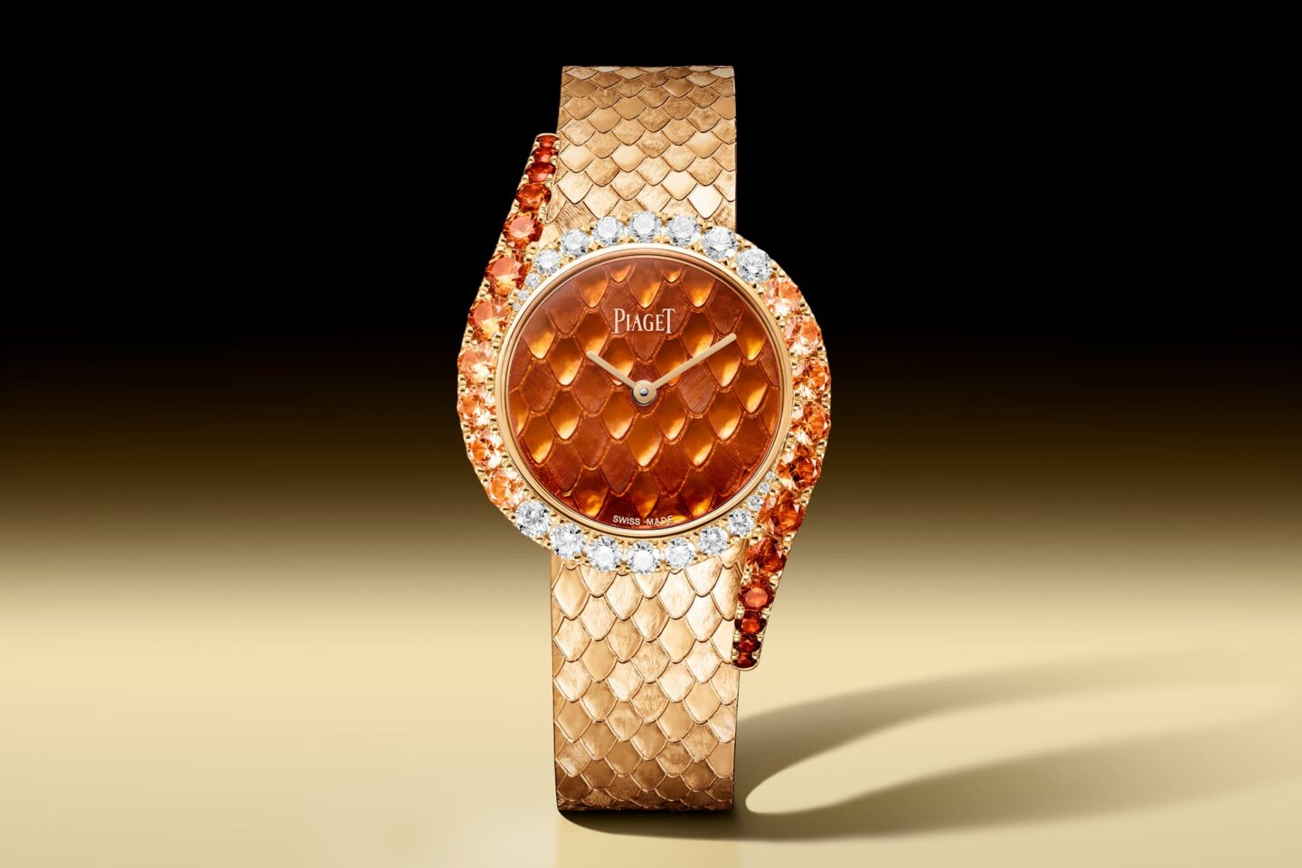 ในรุ่นปี 2026 นี้ หน้าปัดถูกนำเสนอในสองรูปแบบที่แตกต่างกันอย่างสิ้นเชิง รุ่นแรกมาพร้อมหน้าปัดทองคำที่แกะสลักด้วยเทคนิค Décor Palace อันเป็นลายเซ็นของแบรนด์ที่สร้างสรรค์ขึ้นครั้งแรกในปี 1961 ให้สัมผัสราวกับผ้าไหมดิบ ส่วนรุ่นที่สองโดดเด่นด้วยหน้าปัด Grand Feu Enamel สีส้มสดใสที่ประทับอยู่บนพื้นผิวทองคำแกะสลักลายเกล็ดงู เข็มชั่วโมงและนาทีทำจาก Pink Gold ทรงแท่งเรียบง่ายเพื่อไม่ให้บดบังความงามของพื้นผิว ขอบตัวเรือนล้อมรอบด้วยอัญมณีแบบไล่เฉดสี โดยรุ่น Décor Palace ใช้เพชรสีขาวไล่ไปจนถึงสี Cognac ส่วนรุ่นหน้าปัดเอนาเมลใช้เพชรสีขาวไล่ไปหา Spessartite Garnets สีส้มพระอาทิตย์ตกดิน ปกป้องหน้าปัดด้วย Sapphire กันรอยขีดข่วน