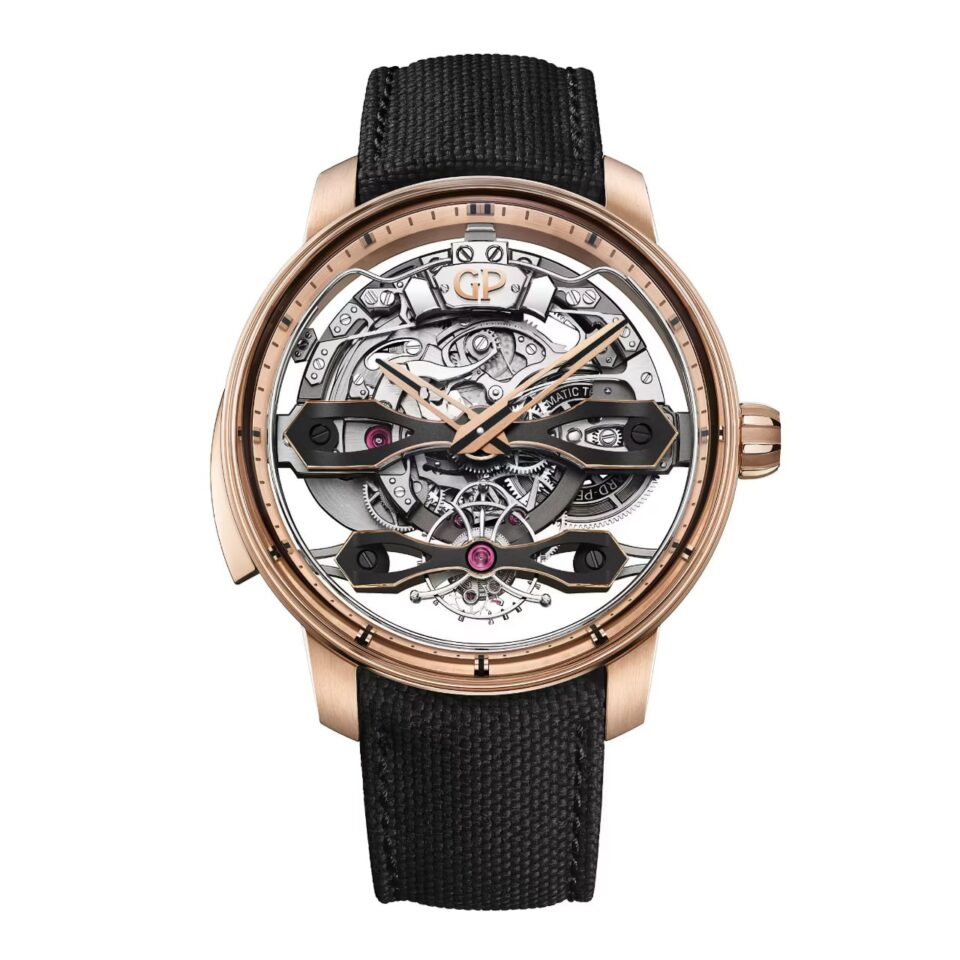 ตัวเรือนขนาด 44 มิลลิเมตร หนา 17.90 มิลลิเมตร ผลิตจากวัสดุ 18K Pink Gold ขัดเงาและขัดด้านอย่างประณีต ตัวเรือนสามารถกันน้ำได้ที่ระดับ 30 เมตร ซึ่งถือเป็นความสำเร็จทางวิศวกรรมที่น่าทึ่งสำหรับนาฬิกา Minute Repeater เนื่องจากปกติแล้วช่องสำหรับคันโยกมักจะเป็นจุดอ่อนในการกันน้ำ แต่ GP ได้ออกแบบคันโยกแบบเลื่อนให้ผสานรวมกับตัวเรือนส่วนกลางได้อย่างแนบสนิท ภายในขับเคลื่อนด้วยกลไก Calibre GP9530 แบบ In-house ทำงานด้วยระบบไขลานอัตโนมัติ ผ่าน Micro-rotor ที่ผลิตจาก White Gold เพื่อไม่ให้บดบังทัศนียภาพของกลกลไก ความถี่ในการทำงานอยู่ที่ 21,600 ครั้งต่อชั่วโมง (3 Hz) พลังงานสำรอง 60 ชั่วโมง รายละเอียดการขัดแต่งนั้นมีความวิจิตรบรรจงด้วยงานขัดแต่งด้วยมือกว่า 1,340 มุม โดยเฉพาะมุมด้านในที่ทำได้ยากยิ่ง สายนาฬิกาทำจากยางสีดำปั๊าลายผ้าพร้อมตัวล็อกสายแบบบานพับสามทบที่ทำจาก 18K Pink Gold