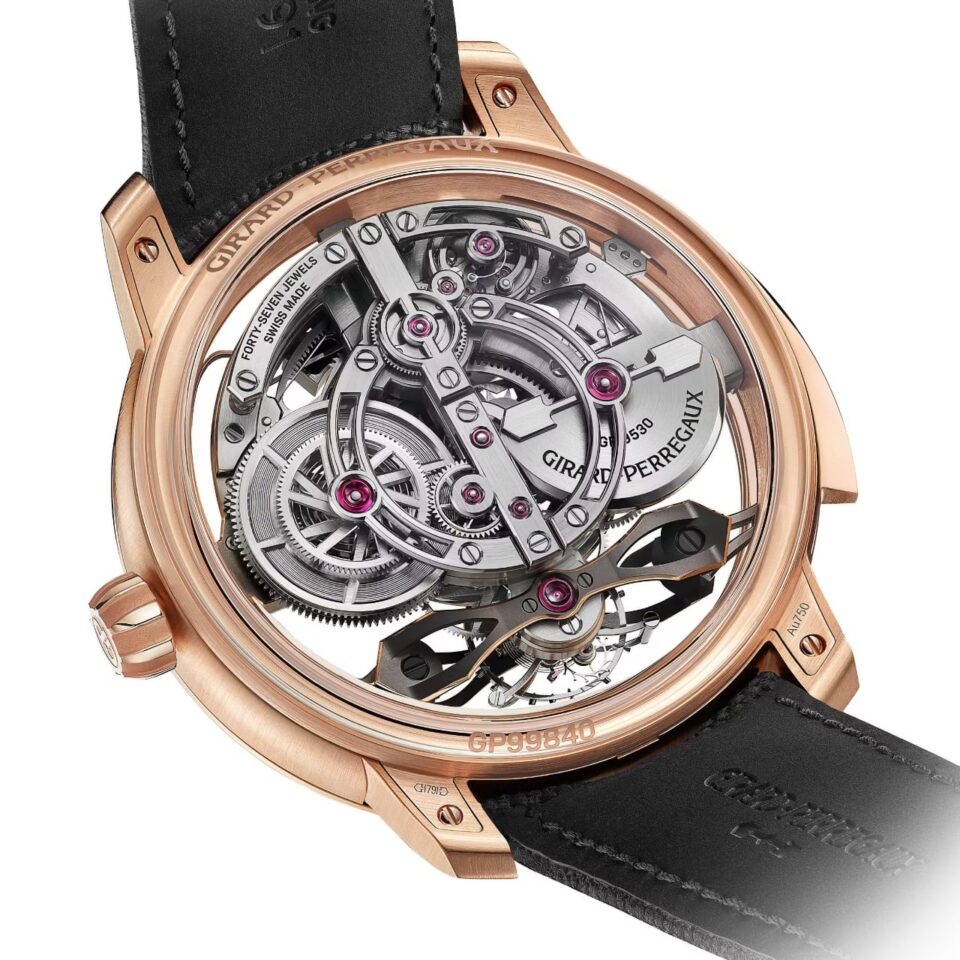 ประวัติความเป็นมาของ Girard-Perregaux นั้น มีความผูกพันอย่างลึกซึ้งกับกลไก Tourbillon และการออกแบบ Bridges มาตั้งแต่ช่วงศตวรรษที่ 19 โดยเฉพาะอย่างยิ่งผลงานอันเป็นเอกลักษณ์อย่าง “Three Golden Bridges” หรือสะพานจักรทองคำสามแถว ของ Constant Girard ซึ่งได้รับรางวัลเหรียญทองจากงาน Paris Universal Exhibition ในปี 1889 สำหรับนาฬิการุ่น Minute Repeater Flying Bridges นี้ ถือเป็นการสืบทอดเจตนารมณ์ดังกล่าวด้วยการนำเสนอโครงสร้างแบบ Openworked ที่แสดงให้เห็นถึงความซับซ้อนของกลไกตีบอกเวลา ซึ่งเป็นงานฝีมือที่แบรนด์มีความเชี่ยวชาญมาอย่างยาวนานนับตั้งแต่ยุคของ Jean-François Bautte ผู้ร่วมก่อตั้งแบรนด์