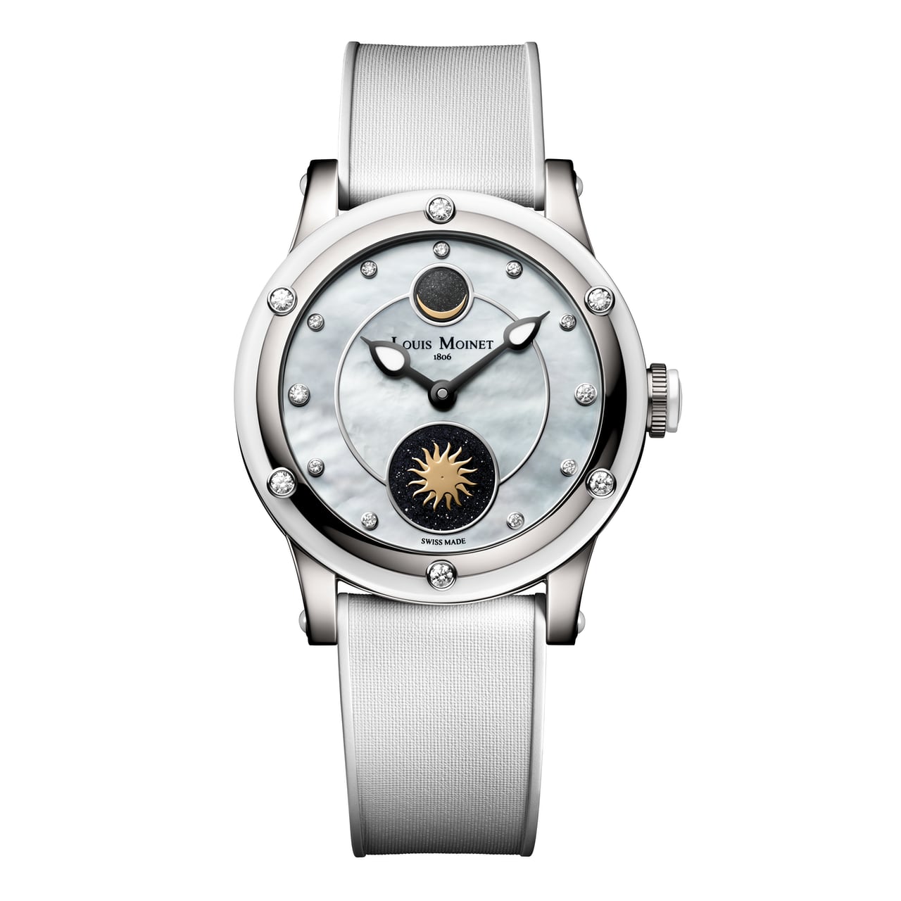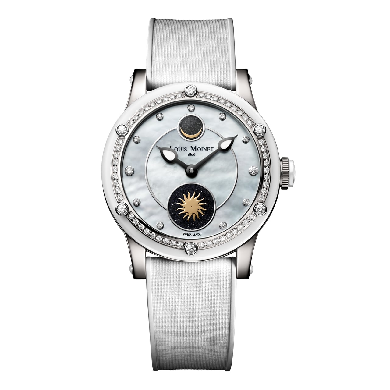 ตัวเรือนขนาด 35.60 มิลลิเมตร หนา 12.10 มิลลิเมตร ผลิตจากวัสดุไทเทเนียม เกรด 5 ขัดเงาและซาติน มาพร้อม ขอบตัวเรือนวัสดุเซรามิกสีขาว สามารถกันน้ำได้ที่ระดับ 50 เมตร บริเวณขาตัวเรือนประดับด้วย Cabochon สีขาวเข้ากับตัวเรือน ส่วนเม็ดมะยมทำจากไทเทเนียมล้อมวงแหวนเซรามิกสีขาว ตรงกลางสลักรูปดอกลิลลี่ ซึ่งเป็นตราสัญลักษณ์ของเมือง Bourges บ้านเกิดของ Louis Moinet ภายในขับเคลื่อนด้วยกลไกไขลานอัตโนมัติ Calibre LM58 ทำงานด้วยความถี่ 28,800 ครั้งต่อชั่วโมง (4 Hz) ให้พลังงานสำรอง นาน 42 ชั่วโมง ผ่านการขัดแต่งโรเตอร์อย่างสวยงามด้วยลวดลายดวงอาทิตย์และดวงจันทร์ที่สอดรับกับหน้าปัด ปิดท้ายด้วยสายยางสัมผัสแบบพื้นผิวซาตินพร้อมตัวล็อกสายแบบบานพับ